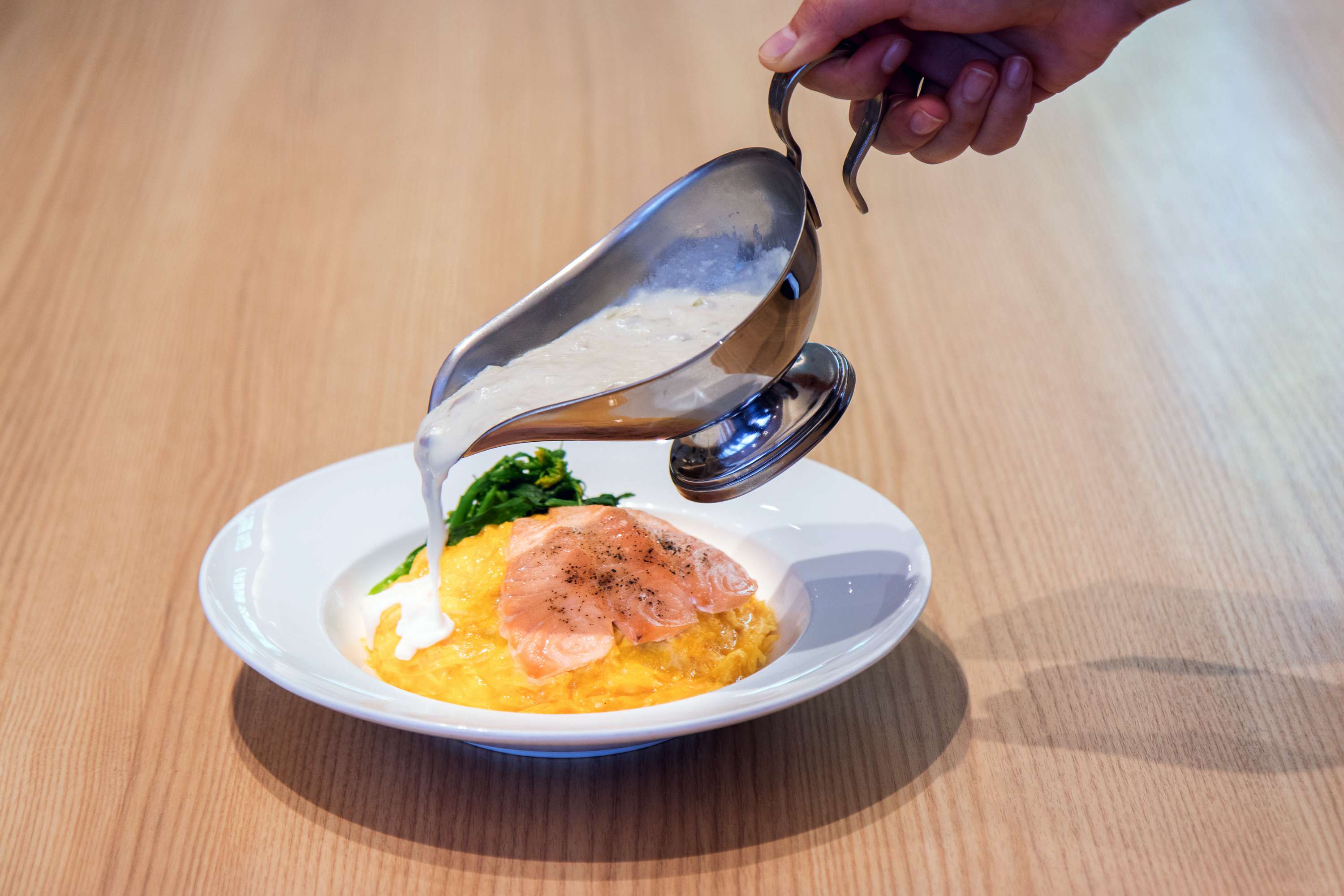 เริ่มต้นที่ร้านแรก MANTEN – BOSHI TOKYO ร้านอาหารที่เด่นด้านปรุงอาหารตะวันตกสไตล์ญี่ปุ่น ปรุงอาหารแบบจานต่อจาน มีเมนูแนะนำพิเศษคือ ข้าวห่อไข่สไตล์ญี่ปุ่นกับแซลมอน (280 บาท) เสิร์ฟพร้อมครีมซอส (OMU Rice with Salmon Cream Sauce) แบบพิเศษมาพร้อมกับวัตถุดิบประจำฤดูกาล คือ สีชมพูของปลาแซลมอนที่สื่อถึงซากุระ สีเขียวของผักสื่อถึงฤดูใบไม้ผลิที่กำลังจะมาถึง ครีมซอสเข้มข้นของบจานนี้จะทำให้เพลิดเพลินไปกับรสชาติแห่งฤดูใบไม้ผลิ