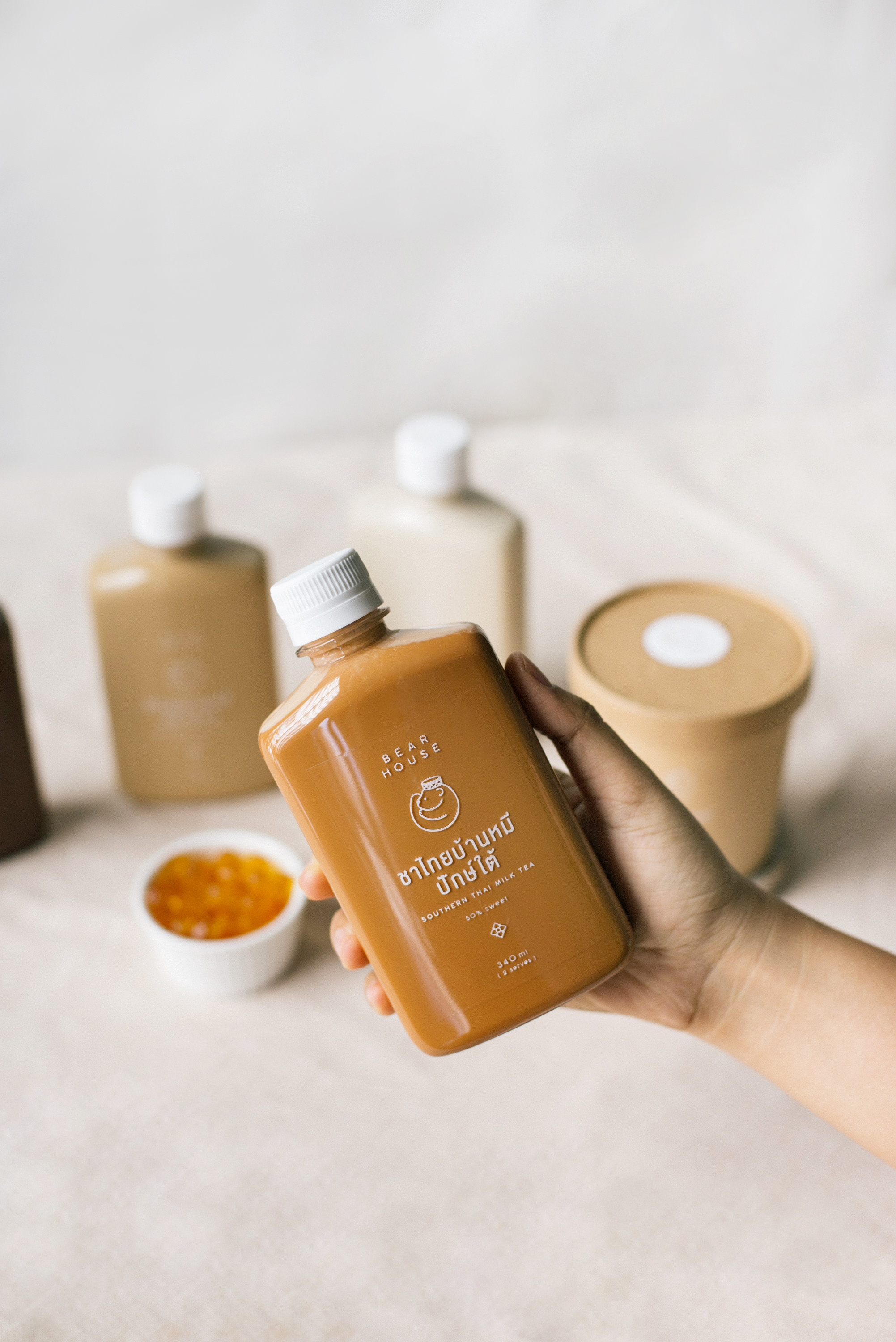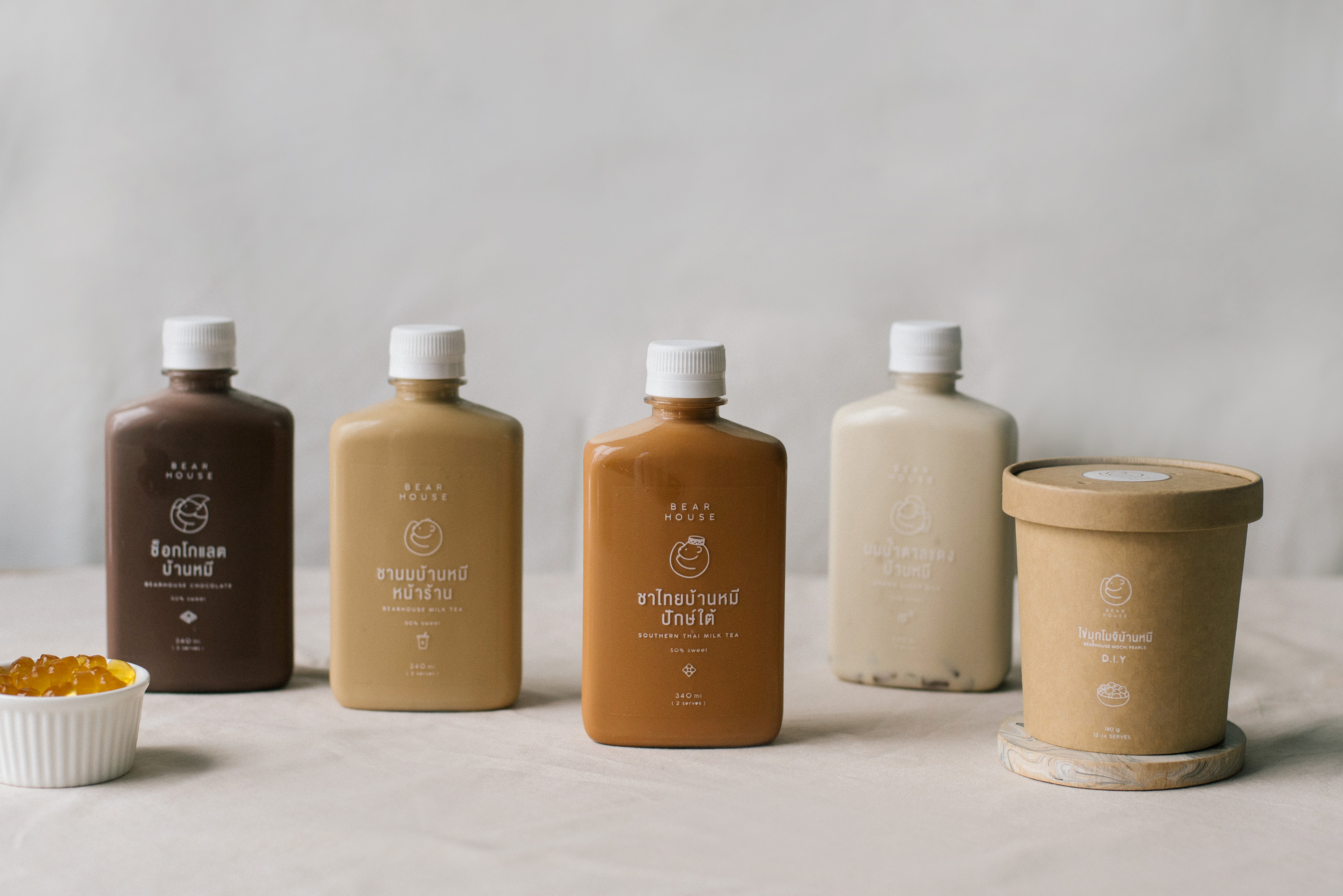 BEARHOUSE ร้านชานมสุดฮิตของวัยรุ่นชาวสยามที่พร้อมส่งความอร่อยให้คุณถึงบ้านด้วยหลากหลายเมนูซิกเนเจอร์ทั้งเครื่องดื่มและขนม ช่วยให้การอยู่บ้านไม่น่าเบื่ออีกต่อไป เริ่มต้นที่เมนูสุดฮิตที่สาวกชานมต้องหลงรักอย่าง ชาขวดบ้านหมี ชานมบรรจุขวดที่หนึ่งขวดสามารถดื่มได้ถึง 2 แก้ว กับหลากหลายรสชาติซิกเนเจอร์ ไม่ว่าจะเป็น ชานมบ้านหมีหน้าร้าน เมนูขายดีของทางร้าน, นมน้ำตาลแดงบ้านหมี ที่ให้กลิ่นหอมของชาและเยลลี่บราวน์ชูการ์ผสมอยู่ในขวดพร้อมดื่ม หรือจะลองเป็น ช็อกโกแลตบ้านหมี เมนูถูกใจคอช็อกโกแลตที่ได้รสเข้มข้นตามแบบเฉพาะตัวของ BEARHOUSE และสุดท้ายกับ ชาไทยบ้านหมีปักษ์ใต้ ชาไทยสไตล์ปักษ์ใต้ที่ให้รสเข้มข้นเหมือนชาชักและกลิ่นหอมเฉพาะตัว