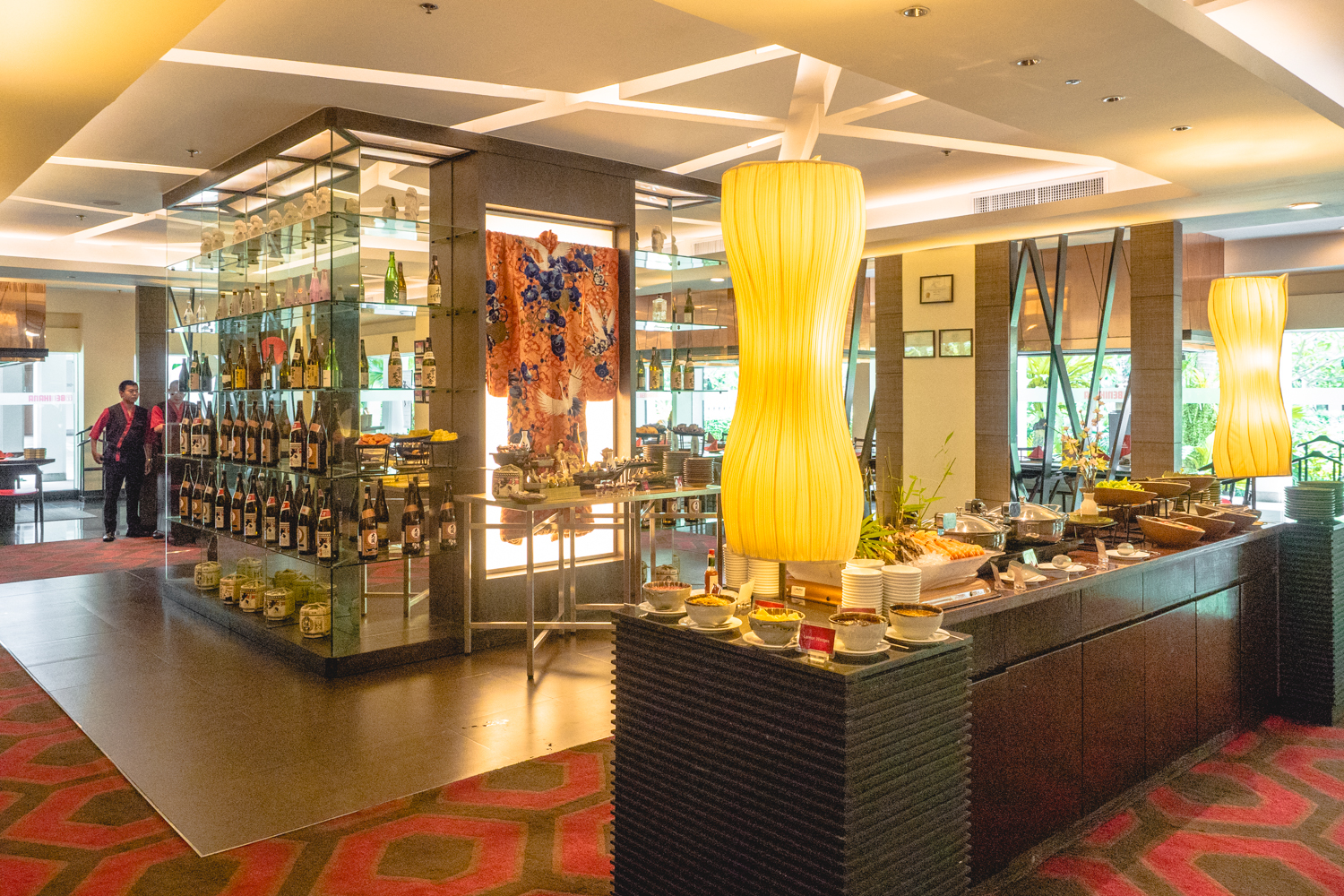 พร้อมเสิร์ฟซูชิคำโตไม่ว่าจะเป็น Salmon Sashimi, Kani Sashimi, Alaskan King Crab Nigiri, Seaweed Salad, Pan Fried Vegetable Gyoza และอีกหลากหลายเมนู รวมทั้งสลัดบาร์สำหรับสายรักสุขภาพ, Normandy Oyster, Homemade Chili Paste Fried Shallot แบบสด ๆ ให้เลือกทาน แน่นอนว่าทางห้องอาหารจัดเต็มด้วยลีลาการทำเทปันยากิ และการควงมีดที่เต็มไปด้วยความสนุกสนานของเชฟ ให้ทุกคนได้อิ่มอร่อยไปกับเทปันยากิสูตรอร่อยแบบไฟลุกไม่ว่าจะเป็น Kurobuta Pork Loin, Chicken Breast, Norwegian Salmon, Australian Tenderloin, NZ Green Mussel และ Hibachi vegetables and Japanese fried rice พร้อมเสิร์ฟความอร่อยในแบบ Entertainment แล้ววันนี้ ทุกวันเสาร์ ตั้งแต่เวลา 12.00-15.00 น.ราคา 1,500++ บาท ต่อท่านรวมเครื่องดื่มชาญี่ปุ่นตลอดมื้ออาหาร