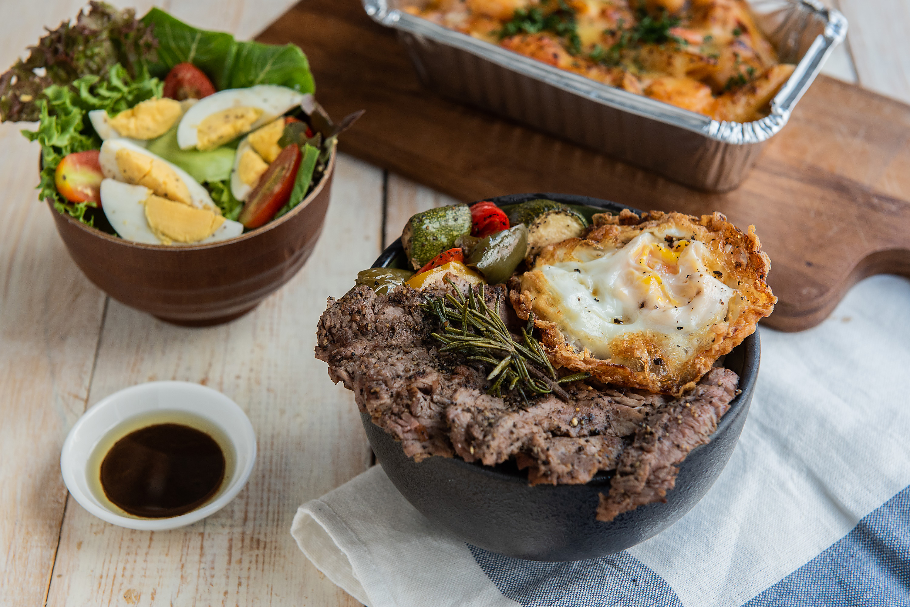 Bluetamp Cafe คาเฟ่และร้านอาหารที่คัดสรรเมล็ดกาแฟชั้นดีจากทั่วโลก พร้อมด้วยประสบการณ์ในการรังสรรค์เบเกอรีและเมนูอาหารรสชาติดี ทานง่ายและถูกปากคนไทย ภายใต้คอนเซ็ปต์สะอาด ปลอดภัย และเก็บไว้ทานได้ เหมาะสำหรับใครที่ยังไม่พร้อมจะเดินทางออกไปข้างนอก โดยสามารถเลือกเมนูที่สนใจและสั่งเดลิเวอรีได้ง่าย ๆ ไม่ว่าจะเป็น ข้าวหน้าเนื้อ (320 บาท) ข้าวสวยร้อน ๆ ที่เสิร์ฟมาพร้อมกับเนื้อย่างสุดพรีเมียมหั่นชิ้นพอดีคำ ไข่ดาว และผักกริลล์