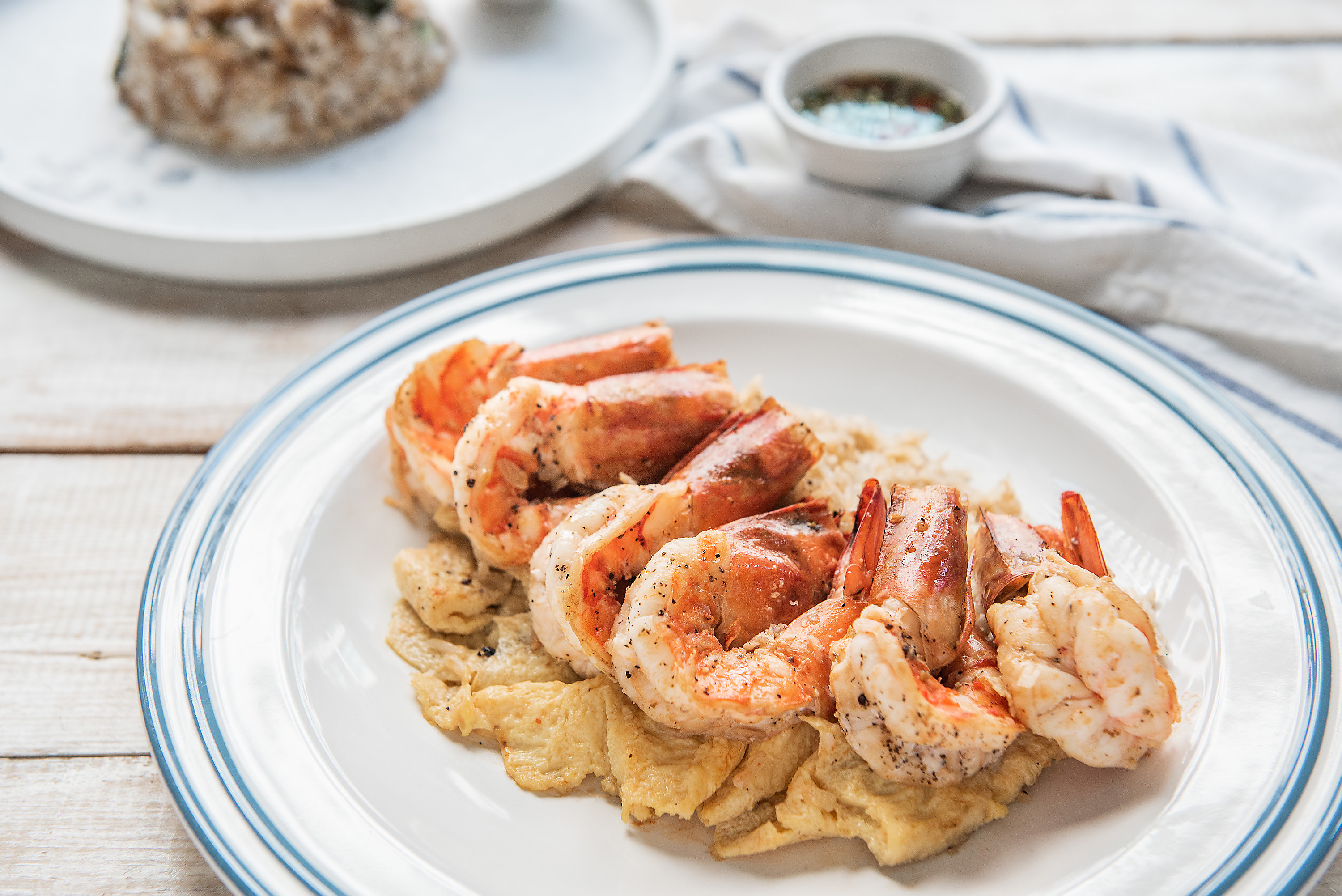 หรือจะลองทานเป็น ข้าวไข่ข้นกุ้งกระเทียม (230 บาท) ไข่ข้นร้อน ๆ ท็อปบนข้าวสวย ก่อนจะจัดเต็มด้วยกุ้งกระเทียมชิ้นโต เติมเต็มความกลมกล่อมหอมอร่อยในทุก ๆ คำ