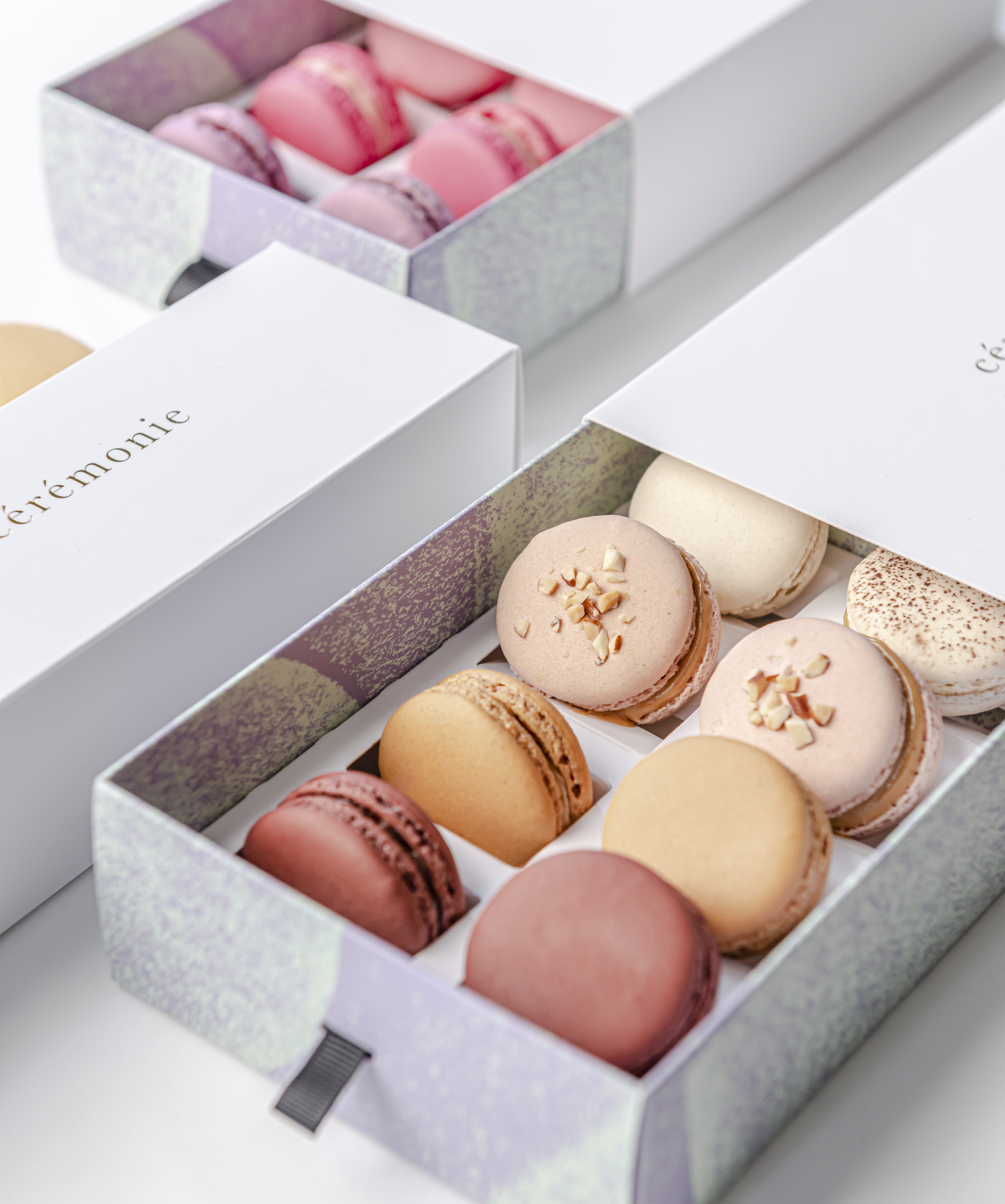 ความพิเศษของมาการองเซ็ตนี้เป็นการครีเอตคอลเลกชันสีและรสชาติให้เลือกทานถึง 12 ด้วยกัน ได้แก่ Chocolate, Vanilla, Strawberry, Raspberry, Rose, Green tea, Tiramisu, Mint, Peanut Butter, Blueberry, Peach Mango, และ Coffee (จำหน่ายในรูปแบบกล่อง โดยมี 2 ขนาดให้เลือก ได้แก่ แบบกล่อง 4 ชิ้น ราคา 160 บาท และแบบกล่อง 8 ชิ้น ราคา 288 บาท) ทุกรสชาติผ่านกระบวนการผลิตแบบโฮมเมดอย่างพิถีพิถัน ทำจากเมล็ดอัลมอนด์บดละเอียด 100% ตามสูตรต้นตำรับจากประเทศฝรั่งเศส พร้อมบรรจุลงในกล่องสีขาว แพ็กเกจจิ้งดีไซน์เรียบหรู เหมาะสำหรับมอบเป็นของขวัญให้กับคนพิเศษ ใครที่อยากลิ้มลองความอร่อยของมาการองและสัมผัสความพรีเมียมของคอลเลกชัน Cérémonie ที่พร้อมเติมความหวานไม่เพียงแต่เฉพาะเดือนกุมภาพันธ์นี้ บ้างแล้วละก็ สามารถสั่งเดลิเวอรี จัดส่งความเซอร์ไพรส์ไปให้กับคนพิเศษได้ที่โทร. 09-2399-9363 หรือ LINE Official @buonogelatoplus ติดตามรายละเอียดเพิ่มเติมได้ทาง www.buonogelatoplus.com และ www.facebook.com/buonogelatoandmoreBuono
