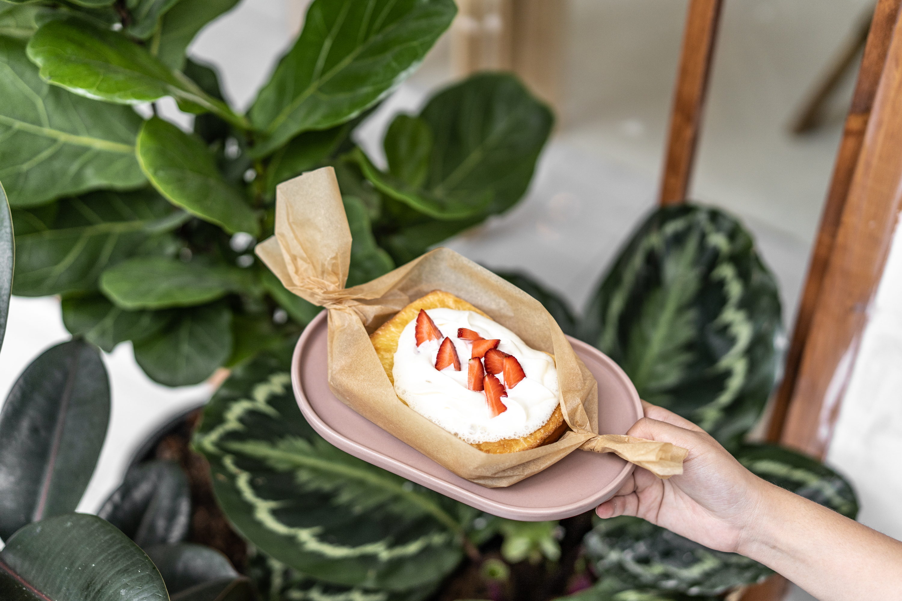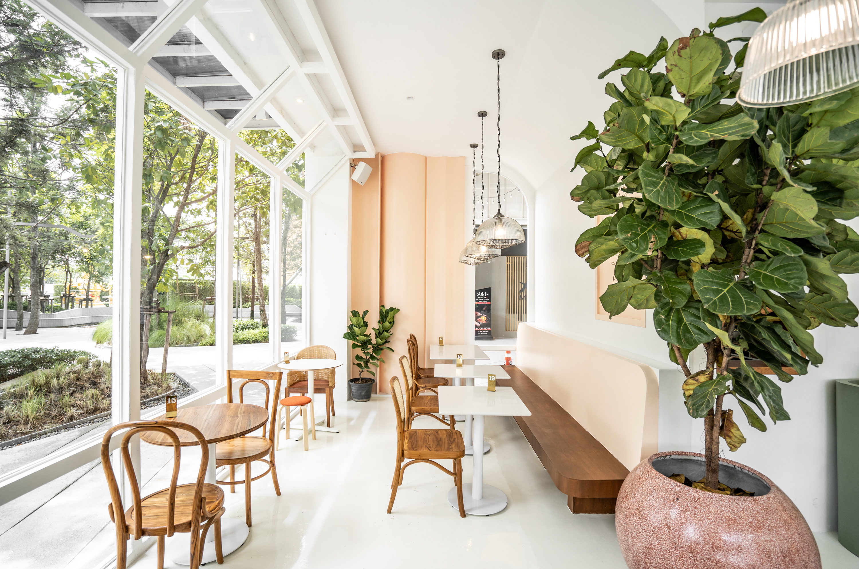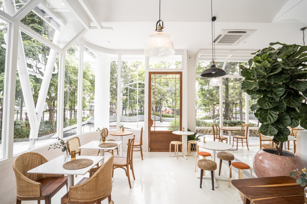 ตัวร้านก็ยังคงคอนเซ็ปต์ของความมีชีวิตชีวาเช่นเคย ด้วยพื้นที่ที่กว้างขวางบวกกับกระจกบานใหญ่ก็ทำให้ดูโปร่งมากขึ้น อีกทั้งยังทำให้อบอุ่น สบายตาด้วยการเลือกใช้สีขาว ชมพูอ่อนและเฟอร์นิเจอร์ไม้ เพิ่มความมีชีวิตชีวาด้วยสีเขียวของต้นไม้ที่รายล้อมอยู่รอบ ๆ ร้าน สำหรับที่สาขาราชพฤกษ์นี้นอกจากจะขนทัพเมนูซิกเนเจอร์อันโด่งดังของทางร้านมาให้ชาวราชพฤกษ์ได้แวะมาลิ้มลองแล้ว ยังมีเมนูใหม่ ๆ มากมายรวมไปถึงเมนูพิเศษเฉพาะสาขานี้เท่านั้นอีกด้วยสำหรับวันนี้เริ่มต้นแบบเบา ๆ กันที่เครื่องดื่มสีน่ารักหน้าตาน่าลิ้มลองอย่าง Strawberry Latte (95 บาท) เครื่องดื่มสุดคิวท์สำหรับคนชอบโยเกิร์ต ที่ทางร้านนำโฮมเมดซอสสตรอเบอร์รีเสิร์ฟแยกชั้นมากับนมสดตกแต่งด้านบนด้วยสตรอเบอร์รีสดลูกโต แนะนำให้คนเนื้อผลไม้และนมให้เข้ากันจะได้เครื่องดื่มที่ให้รสหวานอมเปรี้ยวกำลังดี
