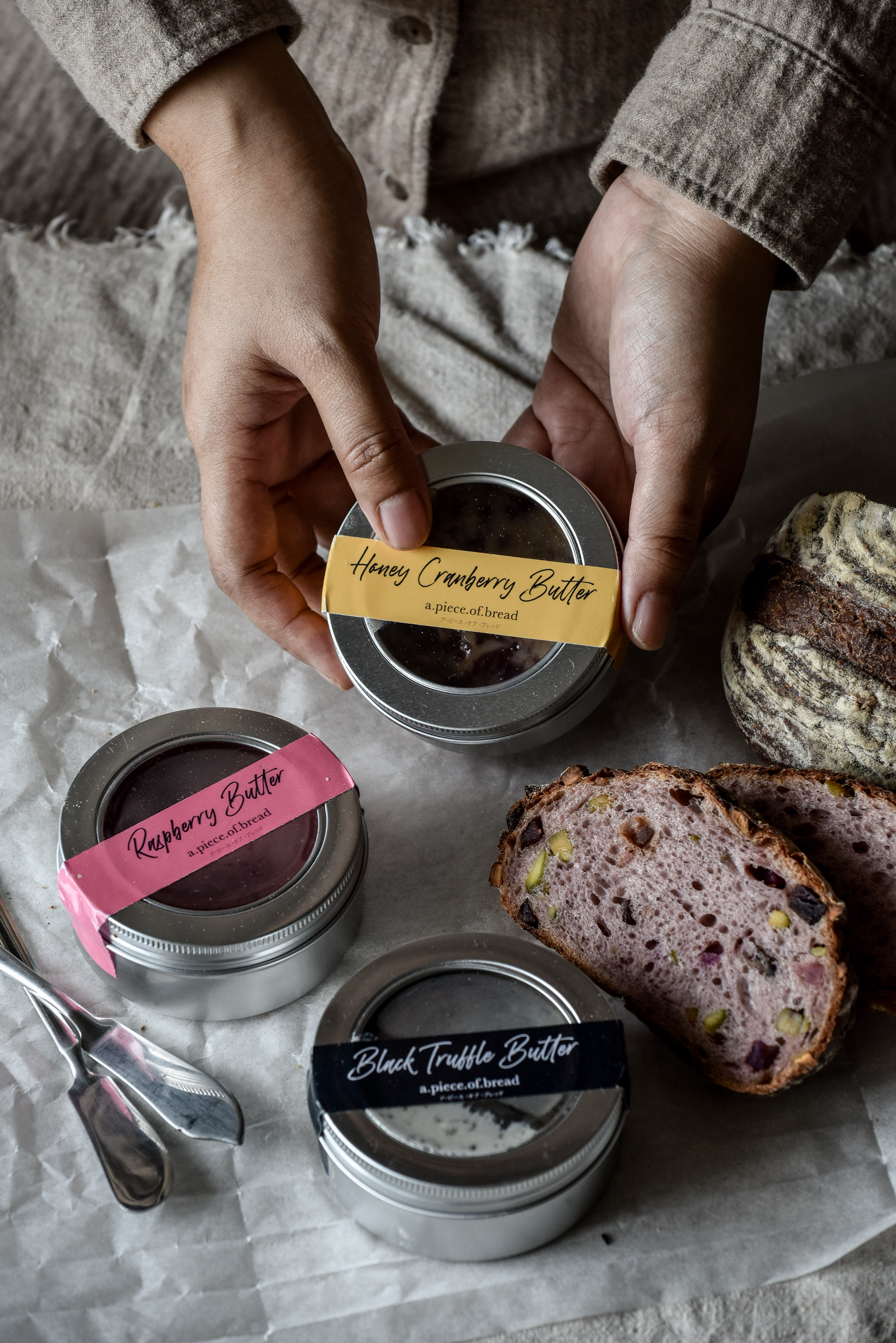 a.piece.of.bread แบรนด์ขนมปังโฮมเมดแสนอร่อยจึงได้เกิดขึ้น เพื่อส่งมอบความรู้สึก ‘อบ...อุ่น’ ให้กับผู้ที่ได้รับ ผู้ที่ได้ทานขนมปังอบอุ่น ๆ หอมกรุ่นจากเตา ความพิเศษของ a.piece.of.bread อยู่ที่การเลือกใช้ยีสต์ธรรมชาติ เพื่อสุขภาพที่ดีของทุกคน ตามมาด้วยขั้นตอนการผลิตขนมปังทุกก้อนที่ผ่านการนวด บ่ม และขึ้นรูปอย่างพิถีพิถันด้วยมือทั้งสิ้น นอกจากนี้ ยังได้มีการคัดสรรวัตถุดิบคุณภาพส่งตรงจากเกษตรกรของไทยเพื่อสร้างสรรค์รสชาติอันเป็นเอกลักษณ์เฉพาะของตัวขนมปัง โดยมีหลากหลายรสชาติให้เลือกทานตามชอบ ทั้งแบบขนมปังเปลือกแข็งและขนมปังเนื้อนุ่มแบบบริยอช ได้แก่ Cranberry Raisin Walnut (250 บาท), Sweet Purple Potato Pistachio (250 บาท), Matcha Almond Red Bean (250 บาท), Chocolate Hazelnut (300 บาท) และ Butterfly Pea Honey Mulberry (300 บาท) ขนมปังแต่ละแบบสามารถจับคู่ทานกับเนยคุณภาพดีจากฝรั่งเศส 3 รสชาติ ให้ได้เลือกทานอีกเช่นกัน ไม่ว่าจะเป็น Honey Cranberry Butter, Raspberry Butter และ Black Truffle Butter แต่ละรสชาติถูกครีเอตมาได้เข้ากันเป็นอย่างดีกับตัวขนมปัง สำหรับคนรักขนมปังคนไหนที่อยากลิ้มลองความอร่อยของ a.piece.of.bread สามารถสั่ง Delivery ได้ที่โทร. 06-1626-2816 หรือสั่งผ่านแอปพลิเคชัน LINE Official @cuisinedegarden ติดตามรายละเอียดเพิ่มเติมได้ทาง www.facebook.com/apieceofbreadbkk และ www.facebook.com/cuisinedegardenbkkCuisine de Garden BKK ส่งมอบความรู้สึก ‘อบ...อุ่น’ ด้วย ‘a.piece.of.bread’ แสนอร่อย หอมกรุ่นจากเตา