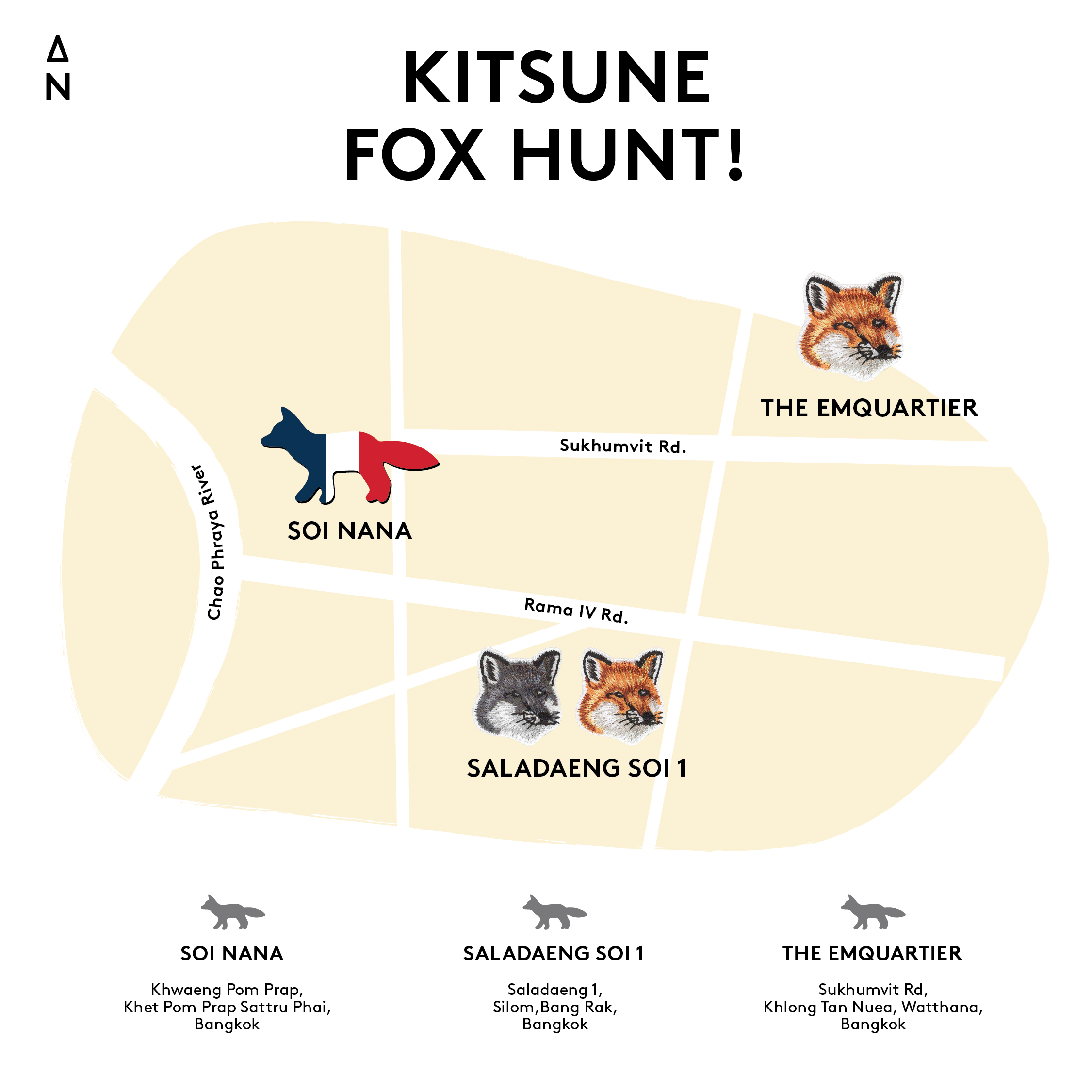 แน่นอนว่าการเปิดสาขาแรกในไทยครั้งนี้ ทางแบรนด์ก็ได้มีการจัดแคมเปญพิเศษที่ชื่อว่า ‘Kitsune Fox Hunt’ ให้แฟน ๆ ได้ร่วมสนุกด้วย โดยกิจกรรมดังกล่าวเป็นการตามล่าสุนัขจิ้งจอกกับ 3 สถานที่สุดชิค ได้แก่ The EmQuartier, Soi Nana (China Town) และ Saladeang Soi 1 เพื่อรับของขวัญสุดพิเศษจากทาง Café Kitsuné