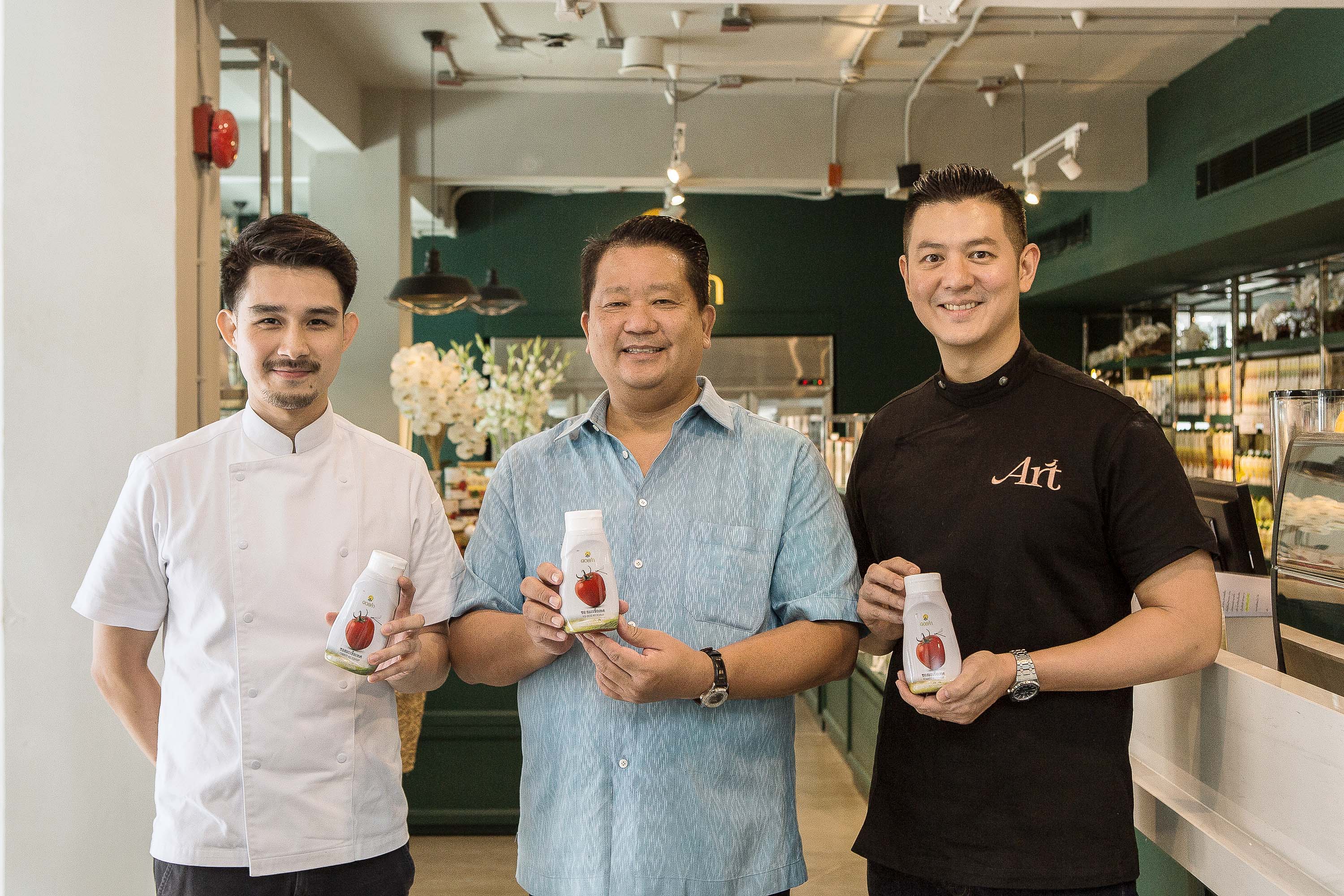 และยังมีอีก 3 เมนูสุดพิเศษโดยเชฟอาร์ต ศุภมงคล ศุภพิพัฒน์ ที่ล้วนสร้างสรรค์มาจากผลิตภัณฑ์มะเขือเทศดอยคำ ไม่ว่าจะเป็น อกไก่อบสมุนไพร ที่นำเนื้ออกไก่มาอบสมุนไพรจนสุกกำลังดี ราดด้วยซอสสูตรเฉพาะของเชฟ เสิร์ฟคู่กับสลัดหน่อไม้ฝรั่งและเห็ดจากโครงการหลวง คลุกเคล้าให้เข้ากันกับเชอร์รีอบแห้งจากดอยคำ ปิดท้ายด้วย พานาคอตต้ามะเขือเทศ ที่เชฟนำซอสมะเขือเทศดอยคำ มาใช้เป็นวัตถุดิบหลัก ความนุ่มและความหวานตัดกับความหวานของซอสเสาวรสเข้ากันอย่างลงตัว เติมความสดชื่นด้วยผลไม้สดรสเปรี้ยว