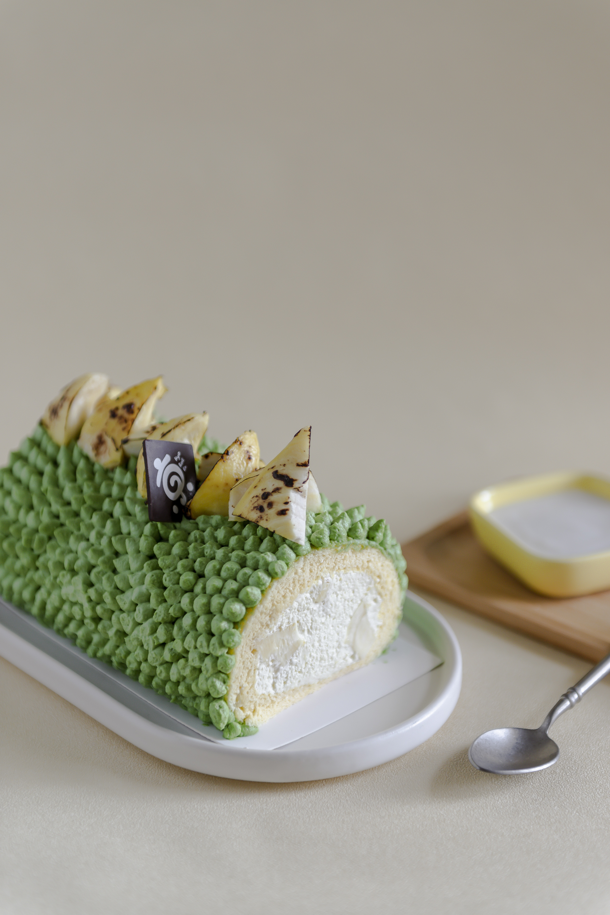 Burnt Durian Roll (950 บาท) โรลเค้กทุเรียนหมอนทองเผานุ่ม ตกแต่งอย่างสวยงามอลังการด้วยลายหนามทุเรียน สอดไส้ครีมสดที่ทำจากเนื้อทุเรียนแท้ ๆ พร้อมท็อปปิ้งทุเรียนหมอนทองเผา ซึ่งเป็นเทคนิคพิเศษในการช่วยเพิ่มรสชาติทุเรียนให้มีความหอมหวานมันยิ่งขึ้น