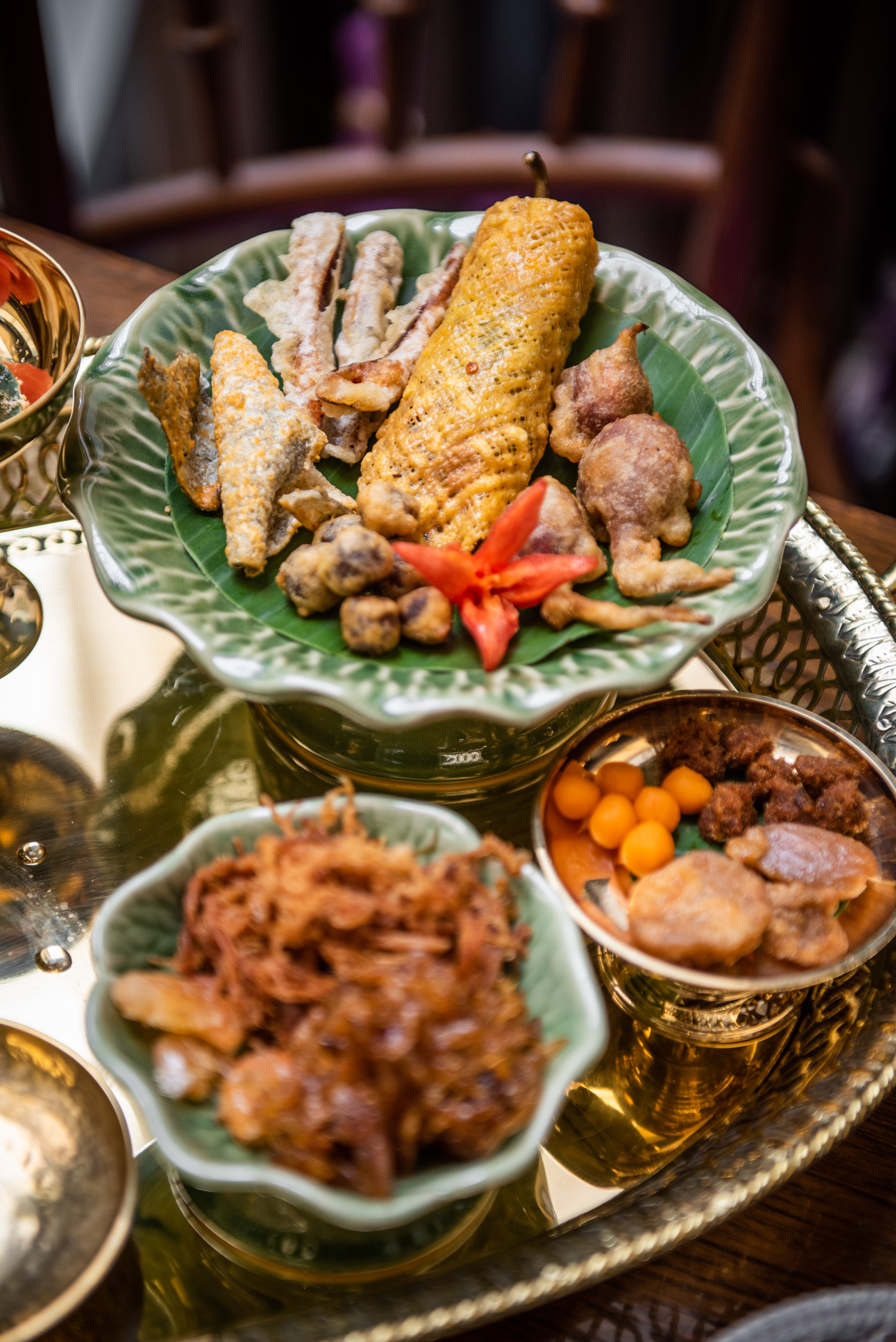 ชวนคุณคลายร้อนด้วยเมนูอาหารไทยรสเลิศกับ ‘ข้าวแช่ตำรับนารา’ (650 บาท) สำรับฤดูร้อน แบบฉบับชาววังที่ Nara Thai Cuisine โดยเป็นการจัดสำรับข้าวแช่ลอยดอกมะลิที่มาพร้อมกันกับเครื่องเคียงโบราณมากถึง 12 อย่าง เพื่อการรับรสสัมผัสที่ดีที่สุดของเมนูไทยโบราณนี้ เริ่มตั้งแต่เครื่องเคียงรสคาวอย่าง ลูกกะปิปั้นทอด, พริกหยวกสอดไส้ จากนั้นตามด้วย ไข่เค็มมุกมณี, พริกแห้งบางช้างทอดสอดไส้ปลาช่อน, หอมทอดยัดไส้ทอด, ไชโป๊วแผ่นหน้าหมู, หนังปลากรอบไข่เค็ม ก่อนจะเปลี่ยนรสชาติมาที่เครื่องเคียงรสหวานอย่าง หมูหวานฝอย, ไชโป๊วเส้นผัดหวาน, ปลายี่สนผัดหวาน และปิดท้ายด้วย ปลาแห้งแตงโม ของว่างไทยแท้แต่โบราณช่วยล้างปาก ให้รสชาติดี ทานแล้วชื่นใจ มอบความรู้สึกสดชื่นในช่วงฤดูร้อนได้เป็นอย่างดี สำหรับผู้ที่สนใจ อยากลิ้มลองความอร่อยของเมนูอาหารไทยโบราณเช่นนี้บ้าง สามารถสั่งได้ตั้งแต่วันนี้-30 เมษายนเท่านั้น