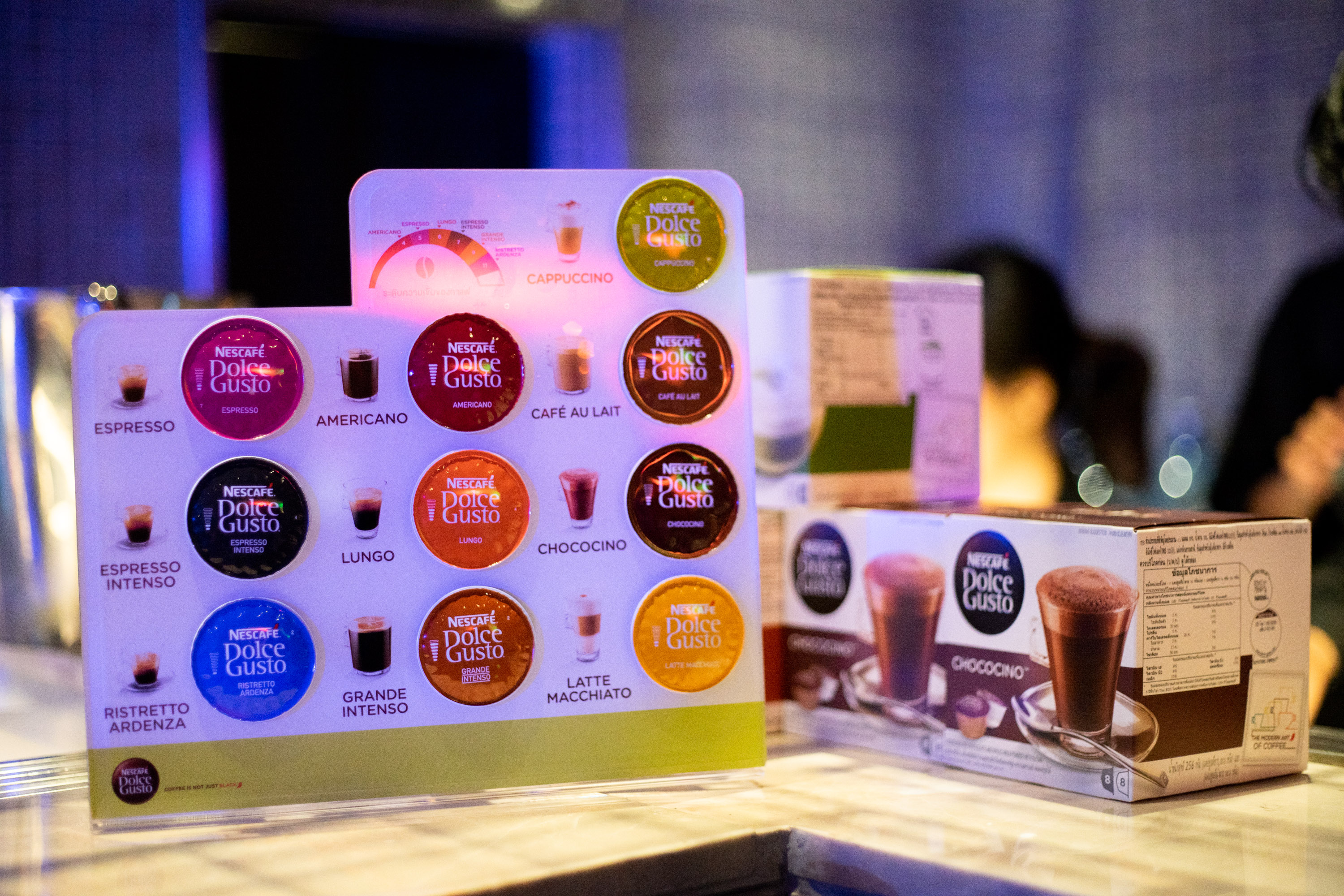 สำหรับเครื่องชงกาแฟระบบแคปซูลของ NESCAFÉ Dolce Gusto ได้รับการออกแบบด้วยความใส่ใจในทุกรายละเอียดเพื่อให้คอกาแฟทั้งหลายได้ดื่มด่ำกับกาแฟคั่วบดที่กักเก็บความสดและกลิ่นหอมไวด้วยนวัตกรรมล่าสุด สะดวกสบายทั้งการใช้งาน ครีเอทเมนูเครื่องดื่มได้หลากหลายมากขึ้นทั้งกาแฟดำ กาแฟใส่นม ช็อกโกแลต และชานม ให้การดื่มกาแฟกลายเป็นเรื่องสนุกได้ทุกวัน ความสนุกของการดื่มกาแฟของ NESCAFÉ Dolce Gusto ซึ่งมีให้เลือกกว่า 13 เมนู มาพร้อมความเข้มข้นกลมกล่อม ลงตัวได้แบบรายวัน อีกทั้งยังนำไปเป็นวัตถุดิบสำคัญ สร้างแรงบันดาลใจให้เหล่าบาริสต้า มิกซ์โซโลจิสต์ได้นำไปครีเอทเป็นเมนูใหม่ ๆ ได้ไม่รู้จบ อีกหนึ่งไฮไลท์สำคัญของงานอีเวนต์อยู่ที่ NESCAFÉ Dolce Gusto Bar ซึ่ง คุณหนึ่ง-รณภร คณิวิชาภรณ์ มิกซ์โซโลจิสต์แนวหน้าของไทยได้วาดลวดลายการเชคเครื่องดื่มสูตรพิเศษที่รังสรรค์ขึ้นมาจากเมนูของ NESCAFÉ Dolce Gusto พร้อมกับเปิดโอกาสให้แขกผู้มีเกียรติและเหล่าเซเลบริตี้ได้พิสูจน์การใช้งานแสนสะดวกสบายด้วยตนเอง เพียงใส่แคปซูล กดปุ่ม เท่านี้ก็ได้ดื่มกาแฟอร่อย ๆ ที่ใช้เวลาสั้น ๆ ภายใน 1 นาที สำหรับใครที่อยากดื่มด่ำรสชาติของกาแฟ ตอนนี้เครื่องชงกาแฟแคปซูล NESCAFÉ Dolce Gusto วางจำหน่ายแล้วในห้างสรรพสินค้า ซุปเปอร์มาร์เก็ตชั้นนำ และทางออนไลน์ สามารถติดตามรายละเอียดเพิ่มเติมได้ที่ www.dolce-gusto.co.th