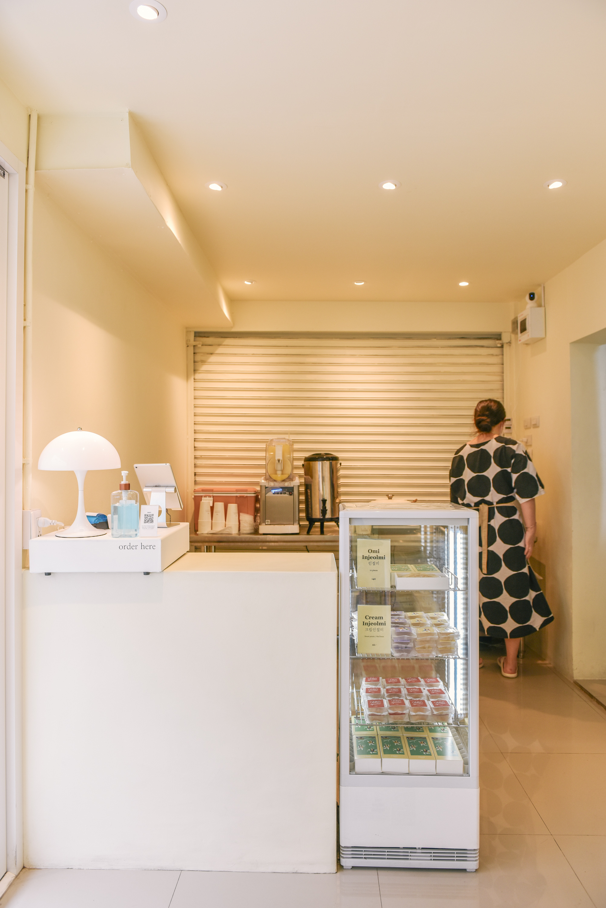 สำหรับแฟน ๆ ของ Woolloomooloo ที่เคยสัมผัสความอร่อยและบรรยากาศสุดชิคสไตล์เกาหลีมาแล้ว ในครั้งนี้ BKK. ขอพาคุณเดินต่อไปอีกเพียงไม่กี่ก้าวก็จะพบกับ Omi Tteok อีกหนึ่งร้านน้องใหม่ในเครือเดียวกันของเจ้าของร้านชาวเกาหลีแท้ ๆ อย่างคุณ Hwang Hosi พร้อมนำเสนอเมนูสตรีทฟู้ดยอดฮิตอย่าง ต๊อก(Tteok) และอินจอลมี (Injeolmi) มาในบรรยากาศสุดเรียบง่ายแต่โดดเด่นด้วยความน่ารักที่สะดุดตาในซอยรัชดาภิเษก 19 โดยตัวร้านเป็นอาคาร 1 ชั้น ตกแต่งด้วยสีขาวและครีม มีโต๊ะให้นั่งทานชิลล์ ๆ ด้านแบบ InDoor และ OutDoor ความเรียบง่ายที่สะดุดตานี้เป็นเหตุที่ทำให้ใครหลายคนใคร่รู้และอยากเข้ามาลอง