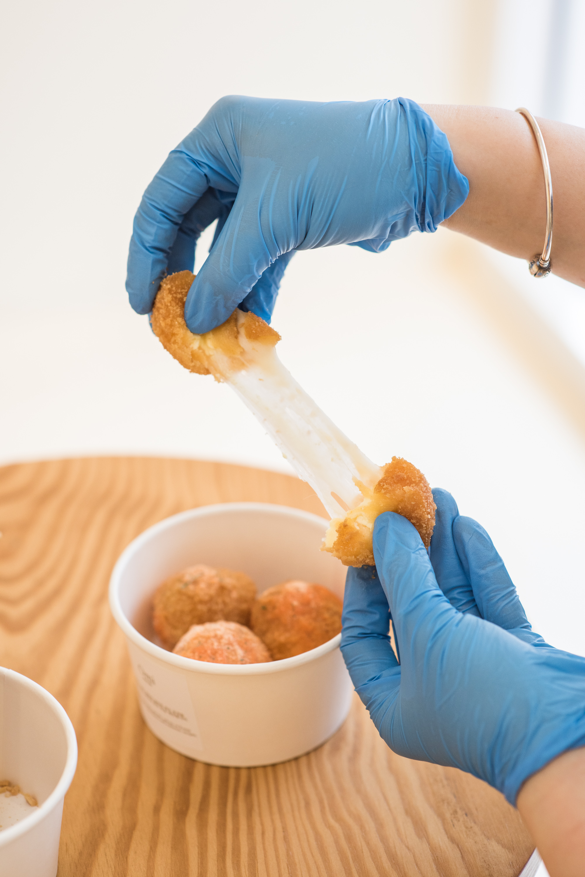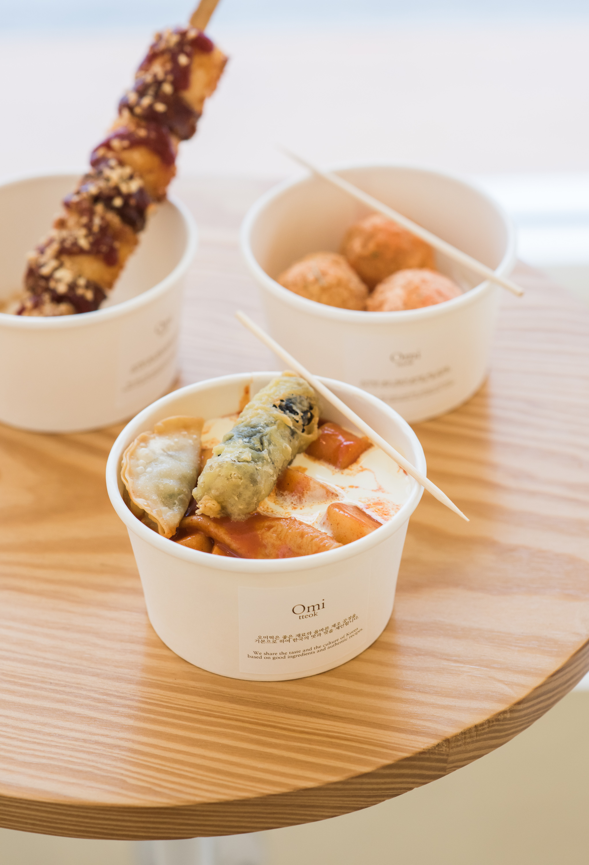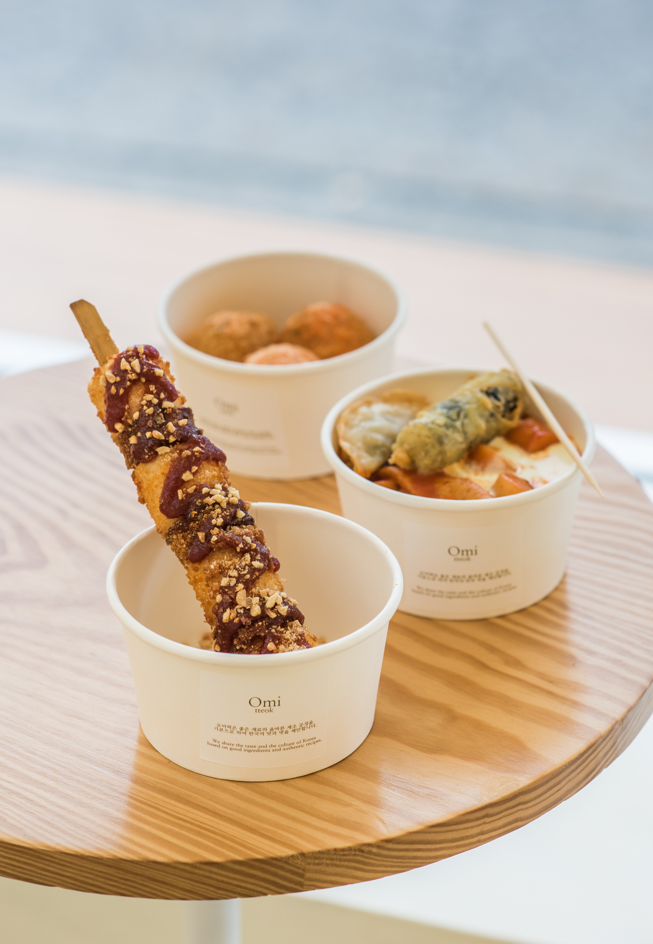 เมนูต่าง ๆ ภายในร้านจะมี ต๊อก(Tteok) เค้กข้าวสูตรพิเศษของทางร้านที่ส่งตรงจากเชียงใหม่เป็นวัตถุดิบหลัก โดยนำมารังสรรค์เป็นเมนูทั้งคาวและหวาน ซึ่งคำว่า Omi นั้นมาจากคำว่า Five Tastes แทนรสชาติทั้ง 5 ที่คุณจะพบได้ในเมนูของที่ Omi Tteok นี่เอง สำหรับวันนี้เมนูแรกที่คุณโฮชิ เจ้าของร้านแนะนำคือ Cream Tteokbokki (110 บาท) ต๊อกบกกีเนื้อนุ่มหนึบหนับราดด้วยครีมซอสและออมุก (เค้กปลาแผ่นเกาหลี) และคิมมาริ ปอเปี๊ยะเกาหลีสอดไส้หมู วุ้นเส้นห่อด้วยสาหร่ายให้ความครีมมีและเผ็ดเป็นเอกลักษณ์จากโคชูจัง ส่วนใครที่เป็น Cheese Lover ลองเมนูใหม่สุดฟินอย่าง Tteok Cheese Balls (100 บาท/3 ชิ้น) ต๊อกโฮมเมดนุ่ม ๆ สอดไส้มอสซาเรลล่าชีสและครีมชีส ให้ความฟินของไส้ชีสแน่น ๆ แบบไม่กั๊ก หรือจะลองเป็น So-Tteok So-Tteok (80 บาท) ต๊อกเสียบไม้สลับชั้นกับไส้กรอกนำไปทอดจนกรอบนอกนุ่มในเป็นสีเหลืองทองน่าทาน ราดด้วยโคชูจังสูตรพิเศษของทางร้าน อีกหนึ่งเมนูยอดดนิยมของที่แนะนำให้สั่งจองล่วงหน้าเห็นทีจะเป็น Omi Injeolmi (140 บาท) Injeolmi หรือโมจิเกาหลีที่ให้ความหนุบหนับคล้ายกับวาราบิโมจิของญี่ปุ่น โมจิจากแป้งข้าวเหนียวเนื้อนุ่มคลุกกับผงถั่วเหลือง (ผงอินจอลมี) หยิบทานได้เพลิน ๆ ให้คุณได้ฟินตามความตั้งใจของทีม Omi Tteok ที่ว่า “We Share The Taste and The Culture of Korea Based On Good Ingredients and Authentic Reciped” ปิดท้ายกันด้วย Cream Injeolmi (45 บาท) อินจอลมีสอดไส้ครีมสูตรเฉพาะของร้านที่มีให้เลือกระหว่าง Red Bean Cream และ Sweet Potato Cream สามารถจับคู่กันกับ Yuzu Sorbet (60 บาท) หรือ Roasted Corn Tea (50 บาท) ชาข้าวโพดหอม ๆ ดื่มเย็น ๆ ดับร้อนก็ฟินราวกับได้แอบแว้บไปนั่งกินที่ฮงแดเลยทีเดียว Omi Tteokรัชดาภิเษก 19 (วิภาวดีรังสิต 16)