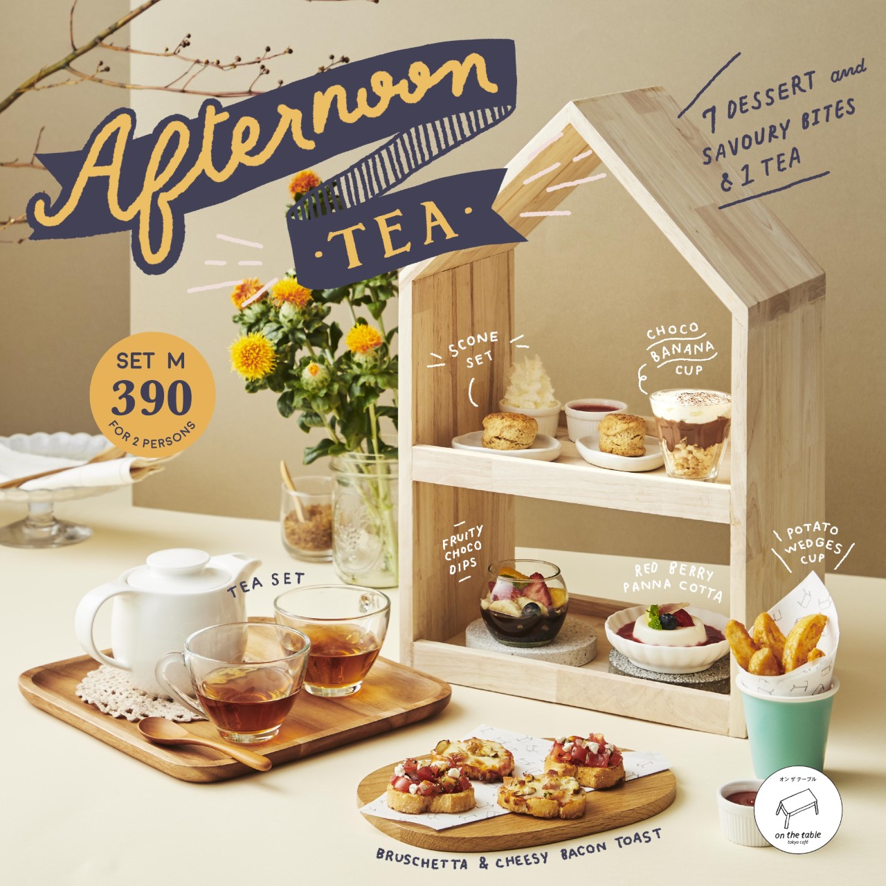 ในส่วนของเซ็ต Afternoon Tea นั้น มีให้เลือกทั้งหมด 2 แบบ คือ Set M (390 บาท) ประกอบไปด้วย ขนมและของว่าง 7 อย่าง ได้แก่ Bruschetta, Cheesy Bacon Fries, Potato Veg Cup, Scone, Red Berry Panna Cotta, Choco Banana Cup, Choco Dip Fruity และชุดชาร้อนสำหรับ 2 ท่าน ตามมาด้วย Set L (490 บาท) สำหรับเซ็ตนี้ มีขนมและของว่างทั้งหมด 9 อย่าง ได้แก่ Parma Ham Cheese Bite, Smoked Salmon Cheese Bite, Crunchy Tempura Shiraishi, Bacon Gyoza, Fruity Waffle, Red Berry Panna Cotta, Choco Tower Toast, Scone, Soft Baked Choc Chip Cookie และชุดชาร้อนสำหรับ 2 ท่าน โดยเมนูชา สามารถเลือกดื่มชารสชาติใดก็ได้ตามชอบ ซึ่งทางร้านมีให้เลือกถึง 6 แบบ ได้แก่ ชาเอิร์ลเกรย์, ชาลาเวนเดอร์, ชาเขียวออสแมนตุส, ชาเขียวมัทฉะ, ชามาราเกซมินต์, ชากลิ่นดอกไม้ และชาคาโมมายล์ ผู้ที่สนใจ สามารถแวะมาเติมเต็มความสุข พร้อมจิบชายามบ่ายได้ตั้งแต่วันนี้ถึง 30 กันยายน 2562 เวลา 14.00-17.00 น. เฉพาะสาขาเซ็นทรัลเวิลด์, สยาม เซ็นเตอร์, เมอร์คิวรี่ ทาวเวอร์ และดองกิ มอลล์ ทองหล่อ เท่านั้น ติดตามรายละเอียดเพิ่มเติมได้ทาง www.facebook.com/OntheTableTokyoCafe