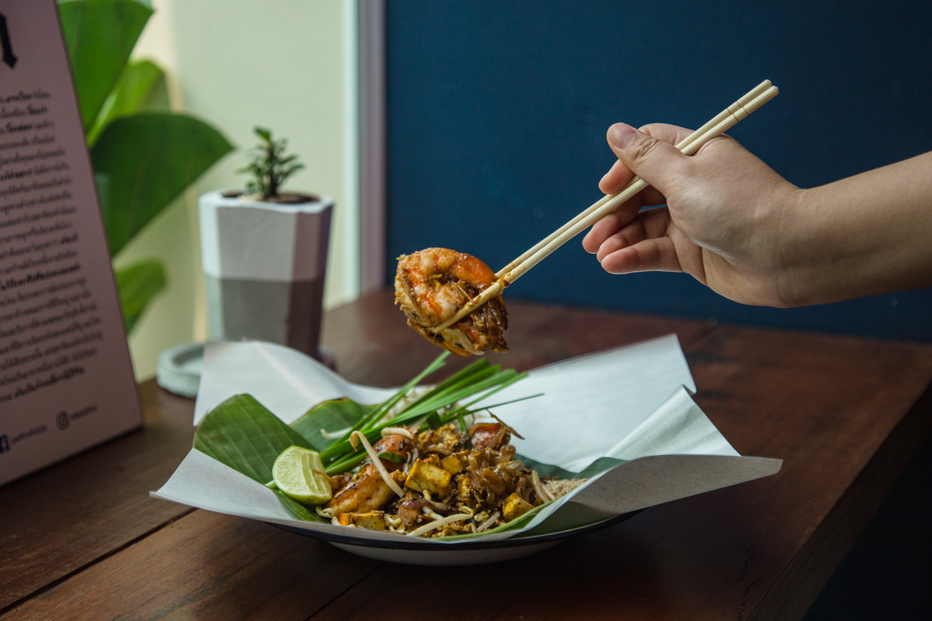 มาถึงความอร่อยเด็ดของผัดไทยจานดังกล่าวกันบ้าง ผัดไทยร้านนี้อยู่ที่การผัดกับไฟแรง ๆ จนได้กลิ่นหอมของส่วนผสมต่าง ๆ ตามมาด้วยเรื่องของการควบคุมอุณหภูมิ เครื่องปรุงให้ออกมาได้มาตรฐานเท่ากันทุกจาน คัดสรรวัตถุดิบจากแหล่งผลิตเจ้าประจำ ไม่ว่าจะเป็น เนื้อไก่ที่นำมาจาก Sirin’s Farm แบบปลอดภัยไร้สารเคมี, เนื้อกุ้งสดตัวโต ๆ ที่ไม่ผ่านการแช่แข็ง ส่งตรงจากจังหวัดปราณบุรี ซึ่งเมื่อนำมาผัดกับไฟแรง ๆ จะได้เนื้อกุ้งที่หวาน หอมมันกุ้งเยิ้ม ๆ ที่ให้รสชาติเข้ากันกับผัดไทยเป็นอย่างดี