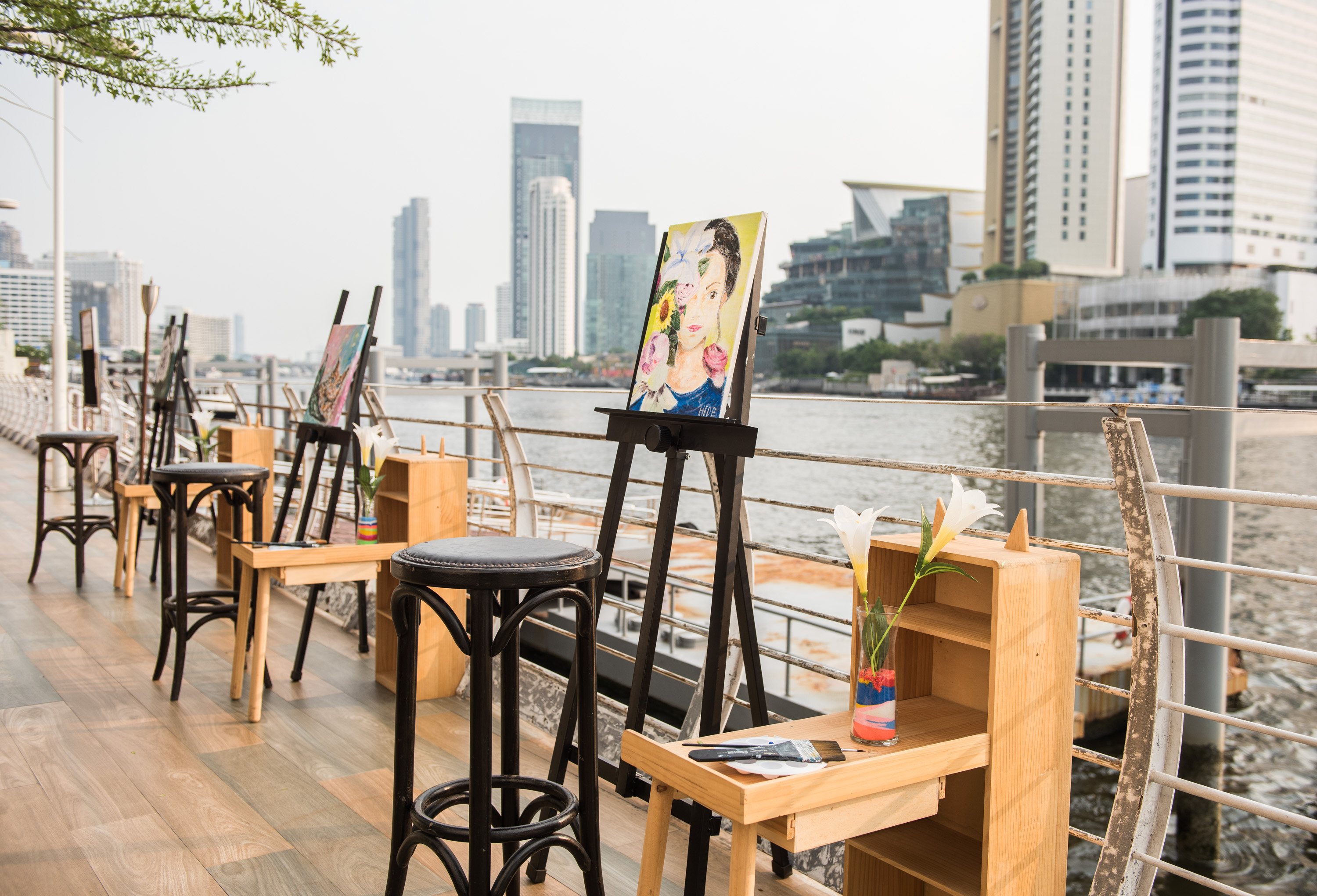 ตามด้วย Paint Bar กิจกรรมสุดพิเศษของทางร้าน โดยเปิดโอกาสให้เหล่าคนที่มีศิลปะในหัวใจมาลองเพ้นต์รูปตามใจชอบ สร้างสรรค์เป็นผลงานศิลปะที่ไม่เหมือนใคร ท่ามกลางวิวสวย ๆ สุดชิลล์ของแม่น้ำเจ้าพระยาที่จะช่วยเสริมความรื่นรมย์ในการครีเอตงานศิลป์ได้เป็นอย่างดี