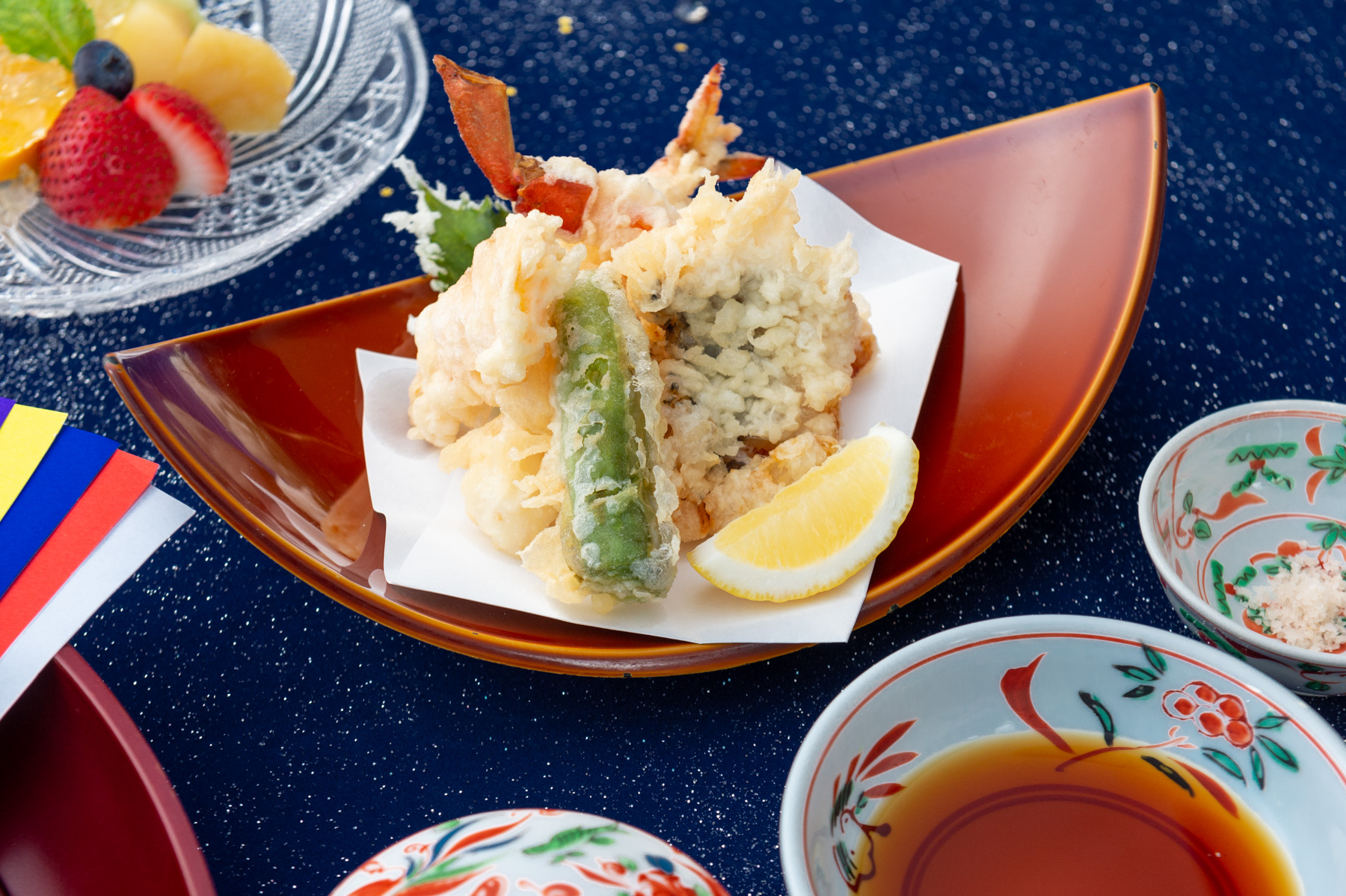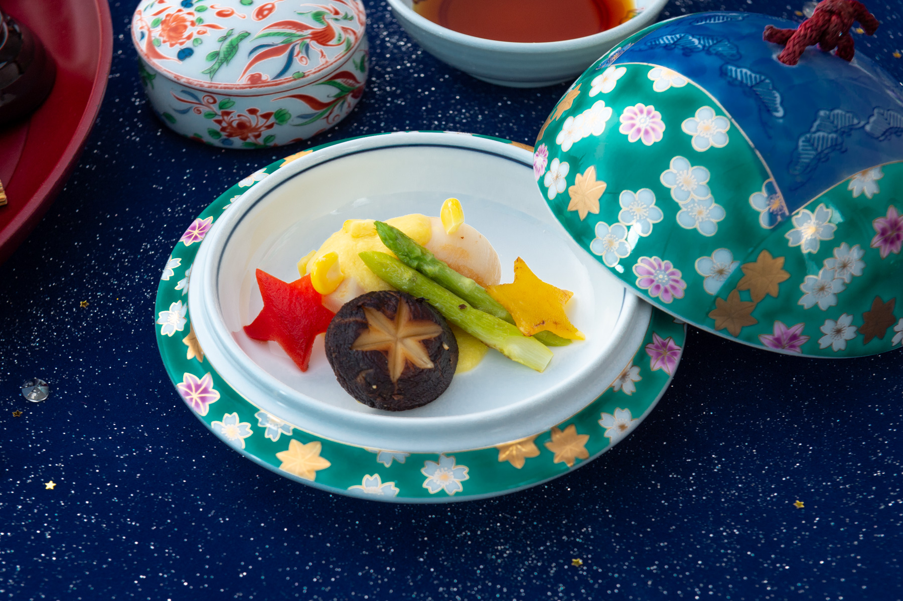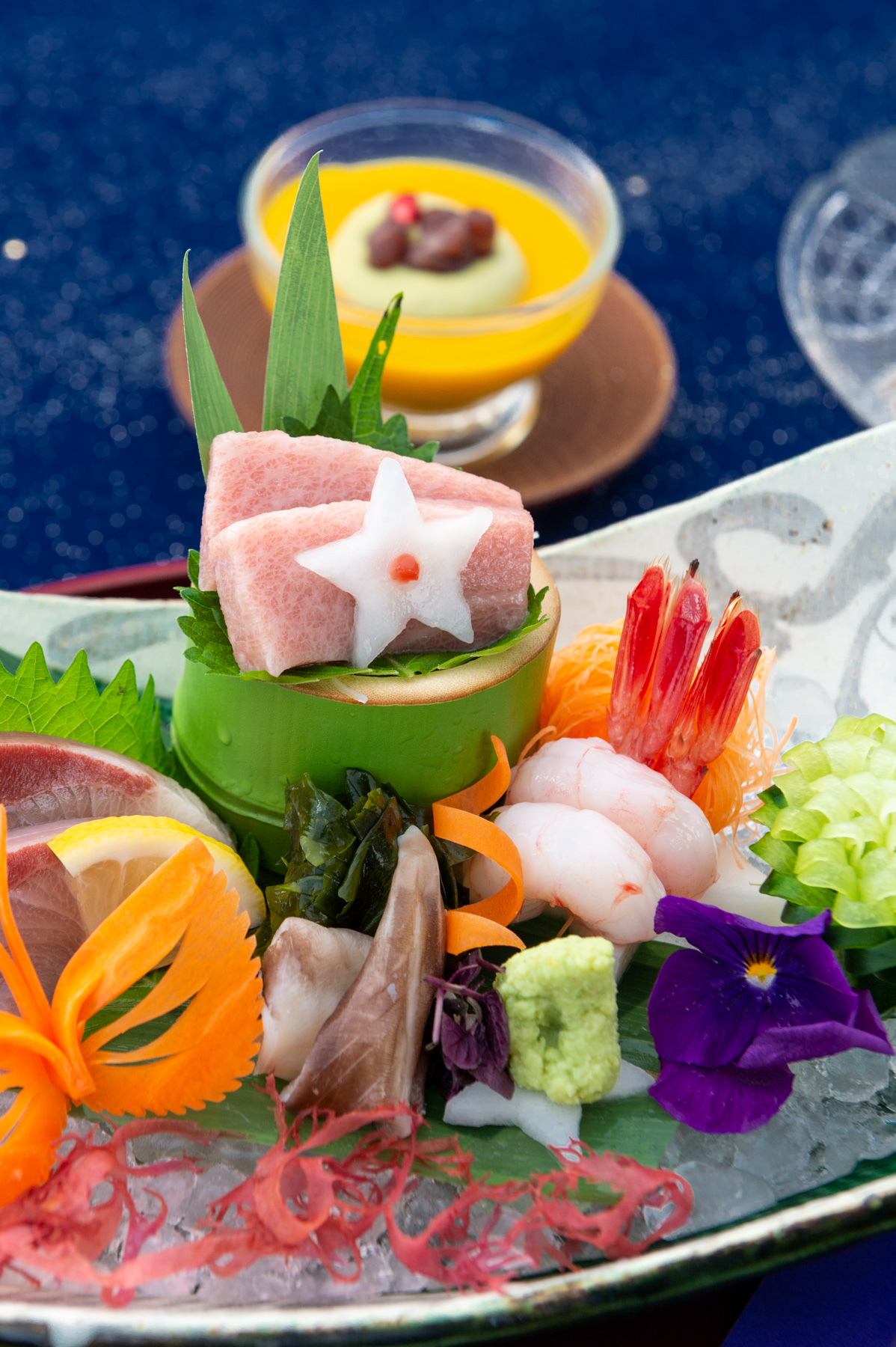 ครั้งนี้ห้องอาหารยามาซาโตะ จึงเชิญชวนเหล่านักชิมมาร่วมกันเขียนคำอธิษฐานบนกระดาษสี แล้วนำไปแขวนบนต้นไผ่ที่นำมาประดับบริเวณหน้าห้องอาหารเพื่อขอพรกับดวงดาว ตลอดเทศกาลทานาบาตะ และทานอาหารเซ็ตพิเศษที่ทาง เชฟชิเงรุ ฮางิวาระ (Shigeru Hagiwara) หัวหน้าพ่อครัวประจำห้องอาหารยามาซาโตะได้เตรียมเสิร์ฟความอร่อยทั้งอาหารชุดมื้อกลางวัน และมื้อค่ำ