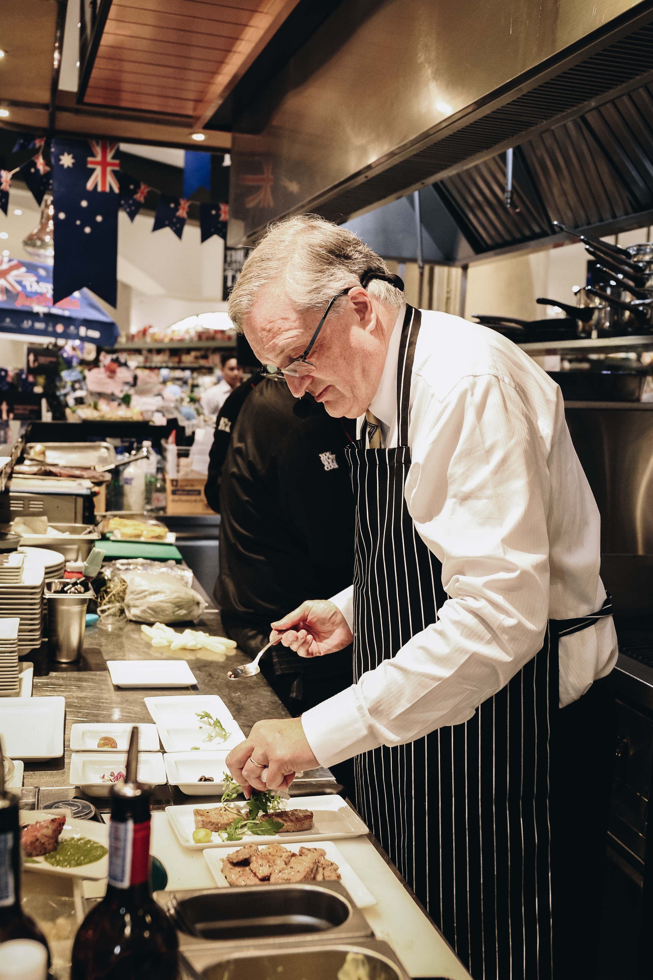 และในวันที่ 11 เมษายนที่ผ่านมา ได้มีกิจกรรมพิเศษ Taste of Australia – VIP’s Table โดยใช้วัตถุดิบนำเข้าจากประเทศออสเตรเลียมาทำเป็นเมนูอาหารให้กับแขกพิเศษ ซึ่งครีเอทโดยเชฟฝีมือเยี่ยมจาก YOU HUNT WE COOK โดยได้รับเกียรติจากเอกอัครราชทูตออสเตรเลีย ฯพณฯ พอล โรบิลลิอาร์ด และ คุณซูซาน คาห์วาติ ทูตพาณิชย์อาวุโสและอัครราชทูตที่ปรึกษาการพาณิชย์ สํานักงานการพาณิชย์และการลงทุนออสเตรเลีย รวมถึงคณะผู้บริหารกูร์เมต์มาร์เก็ต อันได้แก่ คุณชัยรัตน์ เพชรดากูล ผู้อํานวยการใหญ่บริหารสินค้าซุปเปอร์มาร์เก็ต คุณบุญชัย ปลื้มสืบกุล ผู้จัดการใหญ่บริหารสินค้าซุปเปอร์มาร์เก็ต (สินค้าสด) คุณกิติพงษ์ ธรรมชุตาภรณ์ ผู้จัดการใหญ่บริหารสินค้าซุปเปอร์มาร์เก็ต คุณพนิตตา ศรีสะอาด ผู้บริหารอาวุโสกิจการบริหาร และคุณโลร็องต์พุช ผู้จัดการทั่วไป บริหารสินค้าสดและเดลิคัทเทิลเซนท์ อีกทั้งยังได้รับเกียรติจากฟู้ดเซอร์วิสและเหล่าบล็อกเกอร์มาร่วมเป็นเกียรติในงานนี้ด้วย ภายในงาน VIP’s Table ได้รังสรรค์เมนูจากวัตถุดิบชั้นเลิศจากออสเตรเลียถึง 3 เมนูด้วยกัน โดยได้รับเกียรติจากท่านเอกอัครราชทูตฯ และทูตพาณิชย์ที่มาสาธิตวิธีทําเมนูพิเศษ อย่างเป็นกันเอง เริ่มต้นด้วยเมนูแรก Baked Camembert with bacon accompaniment with Australian Grapes coulis ชีสกามองแบร์พันเบคอนแล้วนําไปอบ ราดซอสองุ่นจากออสเตรเลีย เมนูนี้เรียกได้ว่านําวัตถุดิบชั้นเยี่ยมอย่างชีสกามองแบร์และองุ่น มาผสมผสานกันอย่างลงตัว จนได้เมนูใหม่ที่น่าสนใจ และเพิ่มเติมความอร่อยด้วยไวน์ชั้นเลิศ Jacob’s Creek Le Petit Rose ที่ตกแต่งแก้วด้วยดอกไม้อย่างสวยงาม
