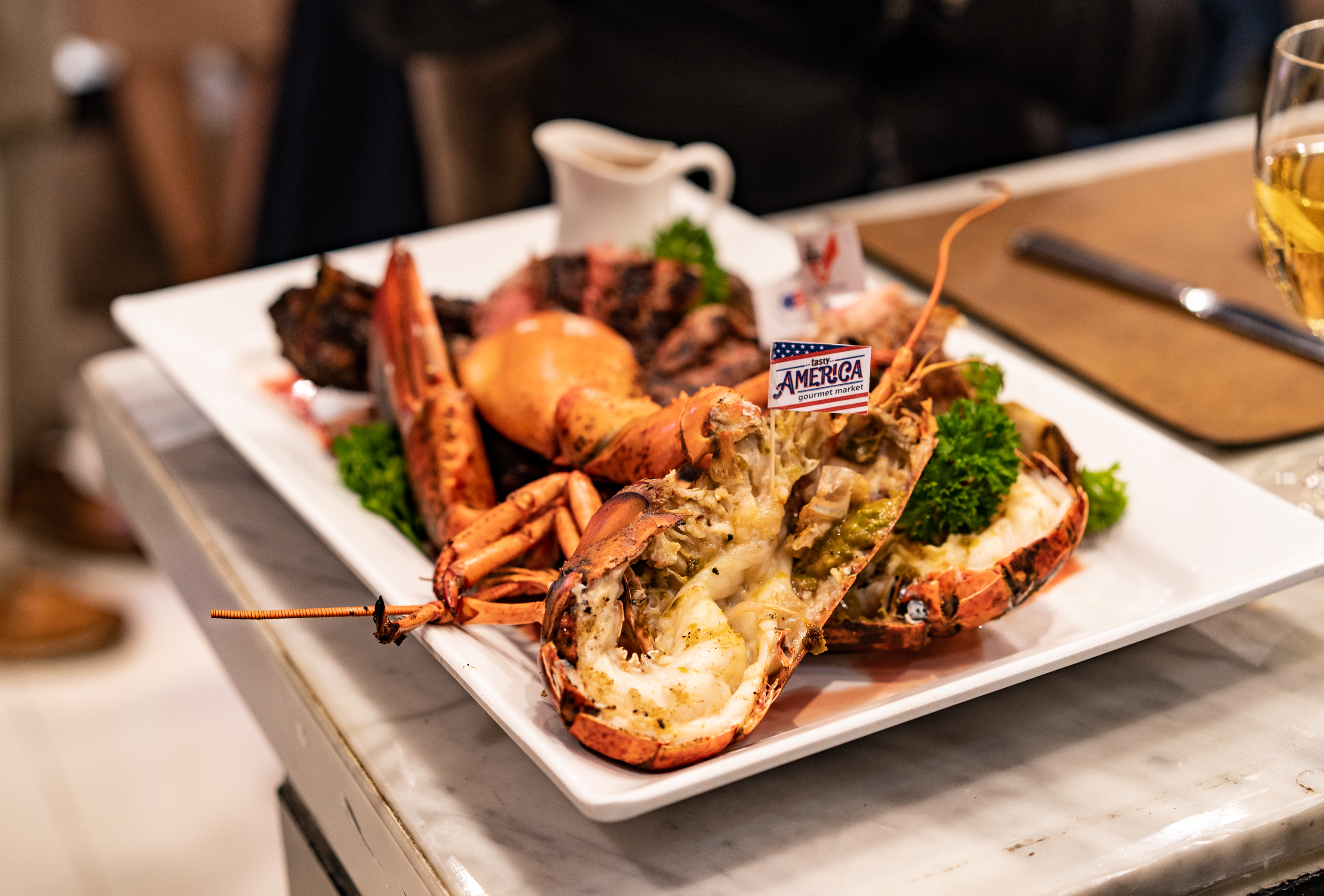 โดยเนื้อโทมาฮอว์กจากอเมริกานั้นได้ผ่านกระบวนการเลี้ยงด้วยธัญพืชต่าง ๆ จะทำให้เนื้อมีไขมันแทรกและมีความนุ่มชุ่มฉ่ำ มีรสชาติที่เข้มข้น ผ่านการรับรองคุณภาพจาก USDA เมื่อนำมาย่างและปรุงด้วยเทคนิคพิเศษก็ยิ่งทำให้เพิ่มความอร่อยให้กับตัวเนื้อมากยิ่งขึ้น สำหรับเมนูนี้จะเสิร์ฟคู่กับล็อบสเตอร์ย่างจากอเมริกา อเมริกันฟรายส์ ซอสไวน์แดง และซอสชีสแบบเผ็ด ให้ได้อิ่มท้องกันแบบเต็มที่