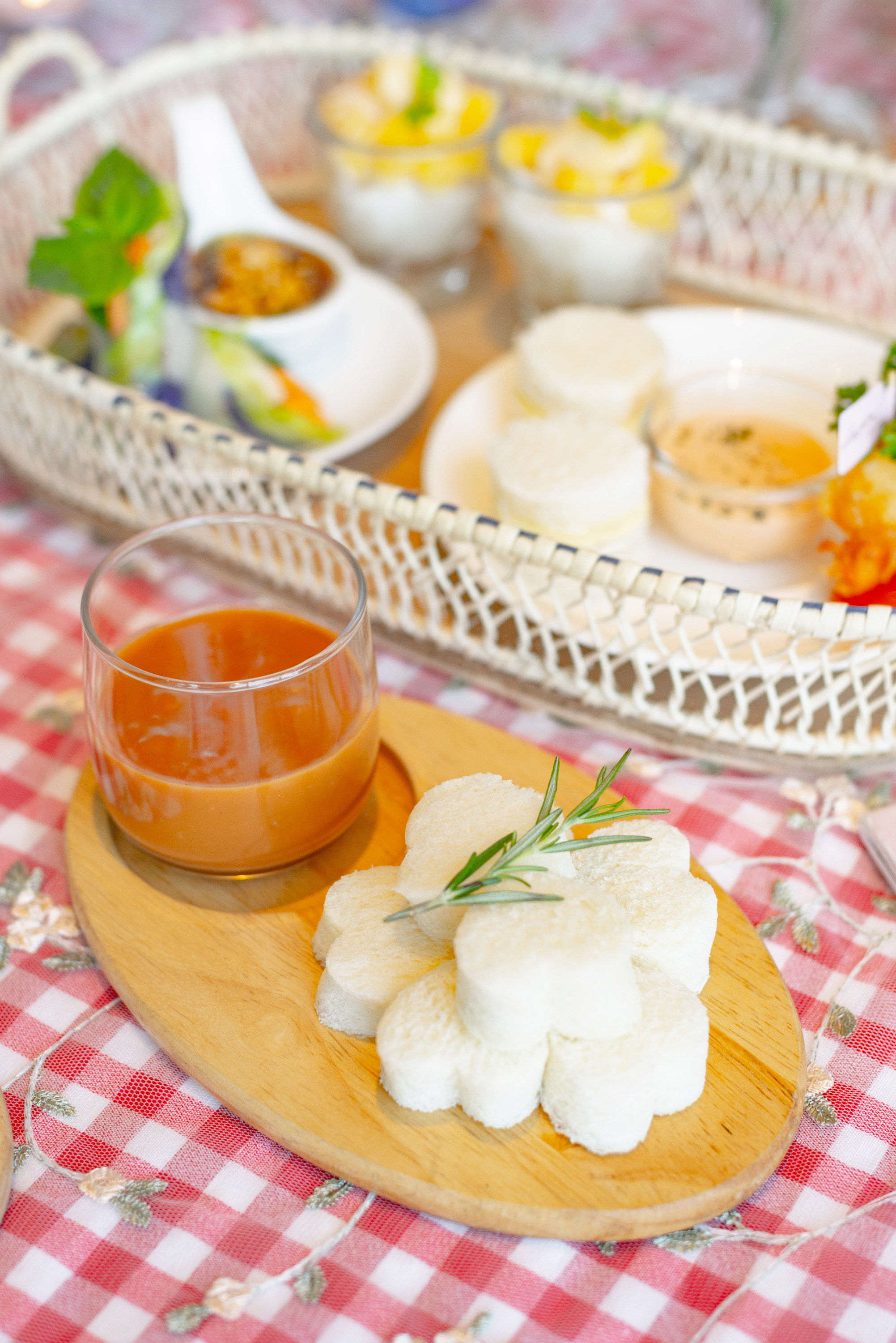 สำหรับเซ็ตน้ำชานี้เป็นการเนรมิตโต๊ะนั่งของคุณให้กลายเป็นลานปิกนิกขนาดย่อม ๆ ที่มาในมู้ดโทนสีหวาน ด้วยผ้าปูสีสันสวยงาม พร้อมเสิร์ฟชุดน้ำชายามบ่ายมาในเครื่องหวายสุดน่ารัก กับหลากหลายเมนูสไตล์ Fusion ตามความถนัดของนารา โดยครีเอตทั้งรสชาติและรูปลักษณ์ของอาหาร ขนม และชุดน้ำชาให้ออกมาทันสมัย ผสานความเป็นไทยและตะวันตกให้เข้ากันได้อย่างลงตัว