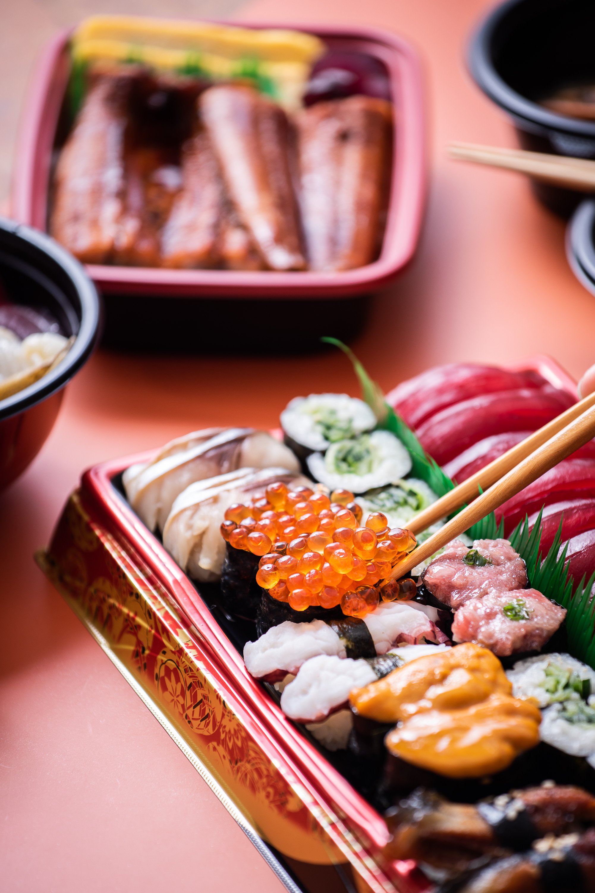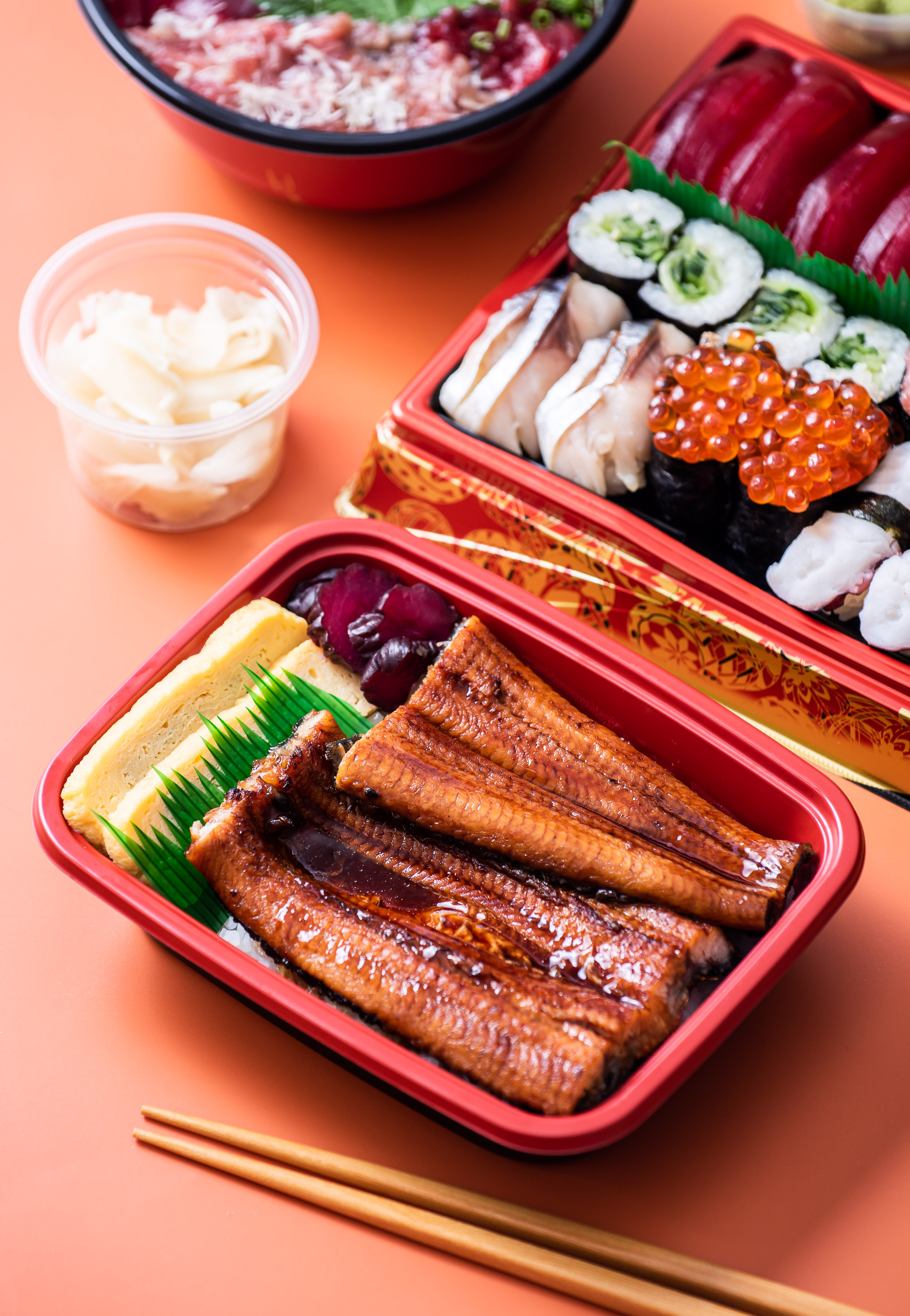 สำหรับเมนูแนะนำที่ต้องลองสั่งมาทานกัน เริ่มที่ Una Jyu (L) (540 บาท) ข้าวหน้าปลาไหลย่างจากร้าน Shabu-Ten ที่จัดเรียงเนื้อปลาไหลย่างชิ้นโต ราดซอสฉ่ำ ๆ มาแบบเน้น ๆ พร้อมด้วยเครื่องเคียงมากมายที่อัดแน่นมาเต็มกล่อง ให้ทานอย่างจุใจ ตามมาด้วย Hokkai Chirashi (480 บาท) ข้าวซูชิโรยด้วยเครื่องวัตถุดิบต่าง ๆ จากร้าน Hokkai-Don ซึ่งเป็นการรวมอาหารทะเลหลากหลายชนิดสไตล์ฮอกไกโด ที่อัดแน่นความอร่อยสดใหม่ของทั้งมากุโร แซลมอน กุ้ง อิคุระ ปลาไหล เอบิโกะ แตงกวา ไข่หวาน ฯลฯ มาแบบล้นกล่อง