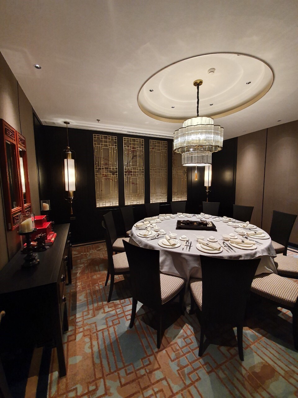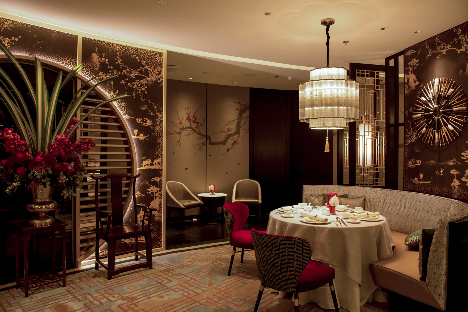 ในส่วนของห้องอาหารจีน บรรยากาศจะเต็มไปด้วยการตกแต่งในแนวย้อนยุค โดยใช้ศิลปะแบบอาร์ต เดโค ซึ่งเป็นที่นิยมอย่างมากในกรุงเซี่ยงไฮ้ ในช่วงปี ค.ศ. 1920 อันโดดเด่นด้วยกระจกใสที่มีลวดลายสีทอง พร้อมพื้นโมเสคหินอ่อน บวกกับการให้แสงสไตล์เรโทร ทำให้ห้องอาหารมีความหรูหรา แต่ยังคงให้บรรยากาศในแบบเป็นกันเอง