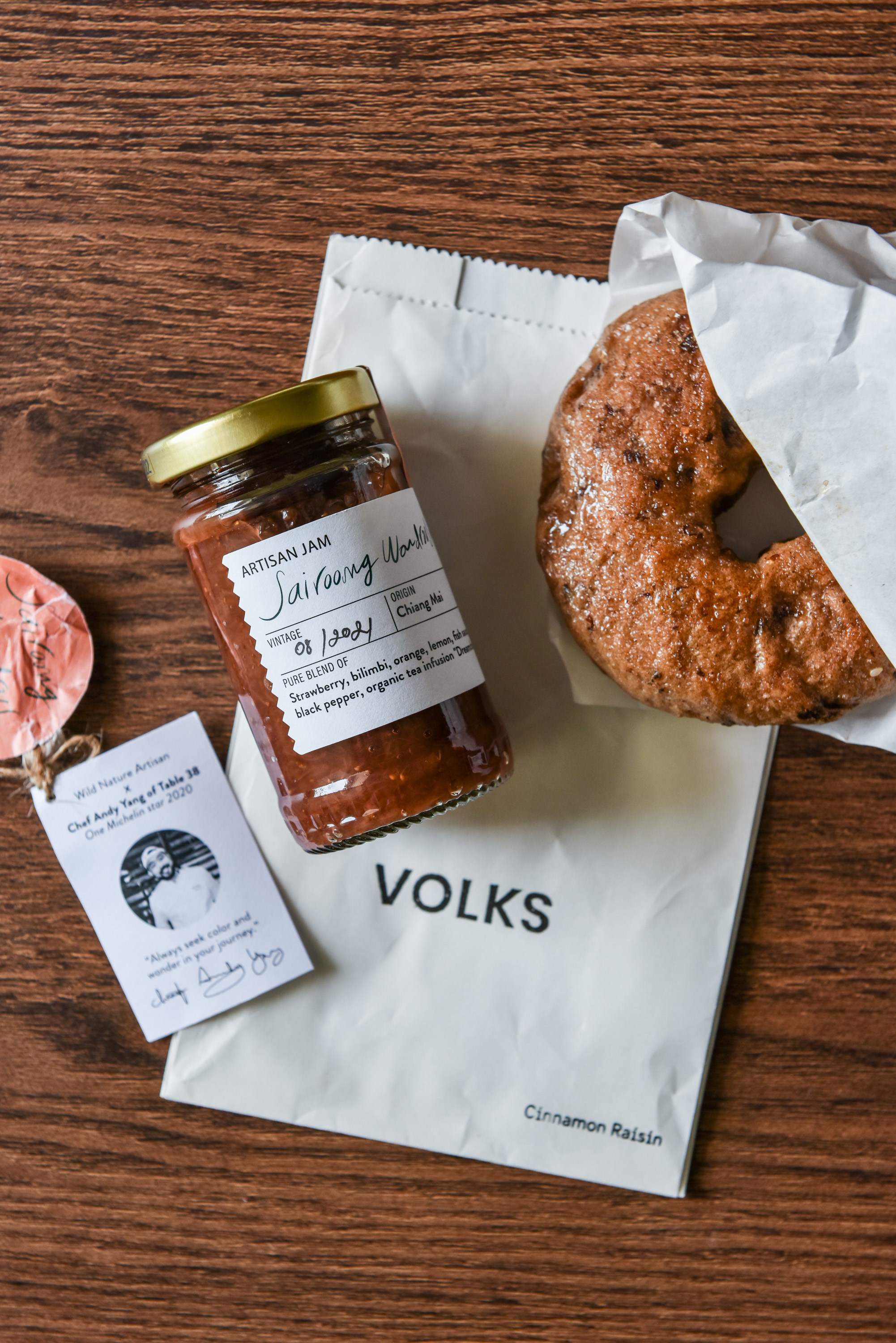 Volks  ร้านเบเกิลสไตล์นิวยอร์กสุดน่ารักที่ครองใจคนรักเบเกิลพร้อมเสิร์ฟความพิเศษให้คุณได้ลองถึงบ้านในแคมเปญ #NYBKKBagel การพบกันของความอร่อยสไตล์นิวยอร์กและไทย โดยในครั้งนี้ Volks จับมือกับ Wild Nature Artisan และเชฟ Andy Yang มาร่วมรังสรรค์เมนูพิเศษ  “NYBKKBagel” (290 บาท) สามารถเลือกเบเกิลจาก 12 เบเกิลซิกเนเจอร์จับคู่กันกับ “Sairoong Jam”แยมสูตรพิเศษ ที่เชฟเลือกใช้สตรอเบอร์รีสดจากอเมริกาผสมกับสตรอเบอร์รีสดจากเชียงใหม่ จับคู่มากับ Swiss gruyère เนยแข็งจากสวิตเซอร์แลนด์ และ US Strawberries สไลซ์บาง ทั้งหมดนี้จะรวมออกมาให้รสชาติที่หลากหลายแสดงถึงการผสมผสานที่แสดงถึง NYC และ BKK ซึ่งเป็นหนึ่งในเมืองที่ร่ำรวยและน่าตื่นเต้นที่สุดในโลก