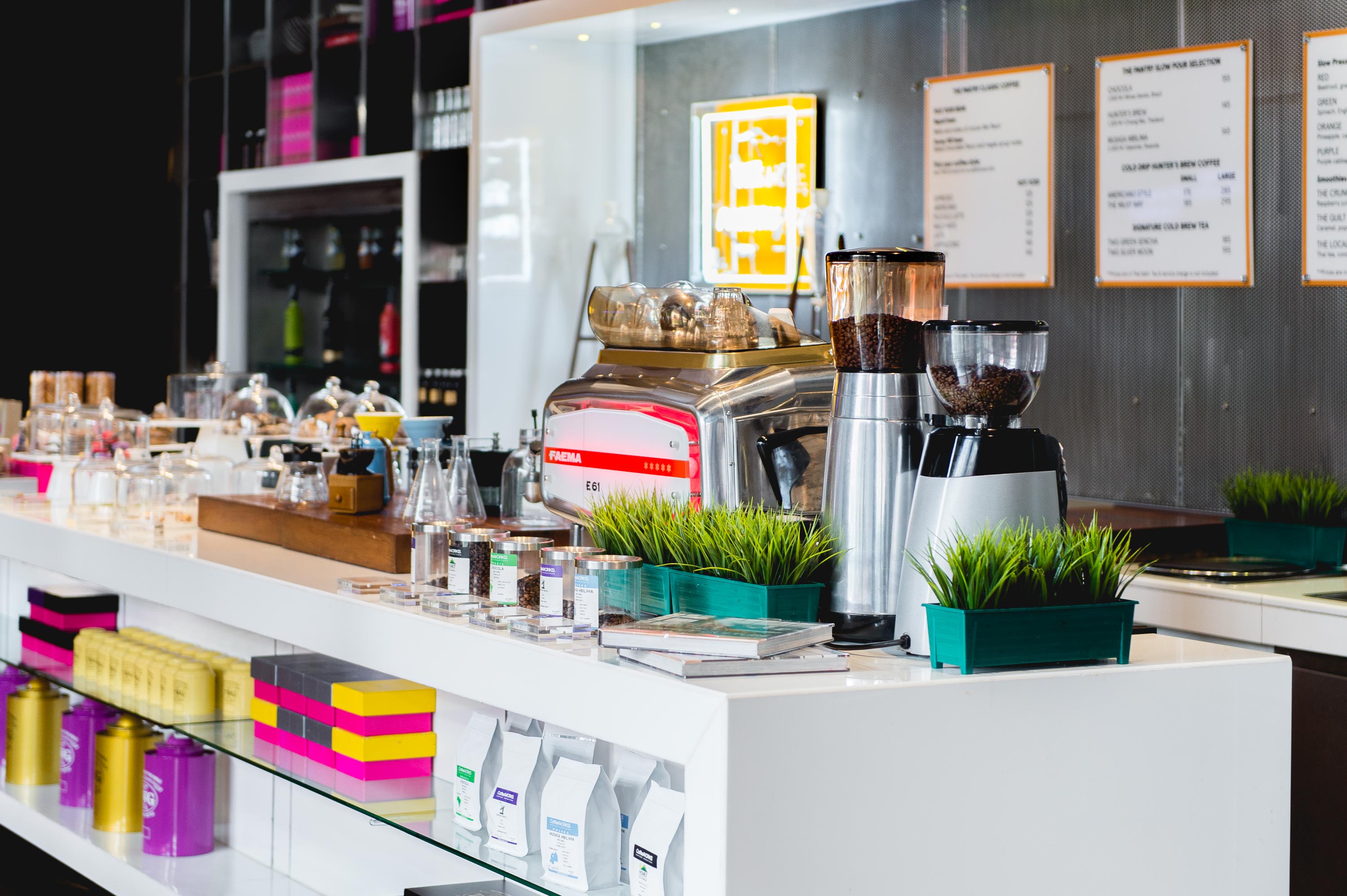 The Pantry กับลุคใหม่ในสไตล์มินิมอล ซึ่งผสมผสานเข้ากับงานดีไซน์อินดัสเทรียลแบบเรียบเท่ได้อย่างลงตัว บริเวณเคาน์เตอร์เป็นในลักษณะแบบเปิดให้เห็นการทำงานของบาริสต้า มีโซนนั่งชิลล์ทั้งบริเวณด้านในและด้านนอกท่ามกลางบรรยากาศสบาย ๆ อบอุ่น เป็นกันเอง ไม่ว่าจะมองหากาแฟไว้ดื่มระหว่างวัน ต้องการนั่งจิบชายามบ่ายแบบสบาย ๆ หรือแฮงเอาท์กับเพื่อน ๆ ด้วยเมนูคราฟท์เบียร์เย็น ๆ เครื่องดื่มค็อกเทลในแบบ W Cocktail Culture ไปจนถึงเมนูน้ำผลไม้สกัดเย็นสำหรับนักดื่มสายสุขภาพ ที่นี่ก็พร้อมให้บริการครอบคลุมทุกรูปแบบ