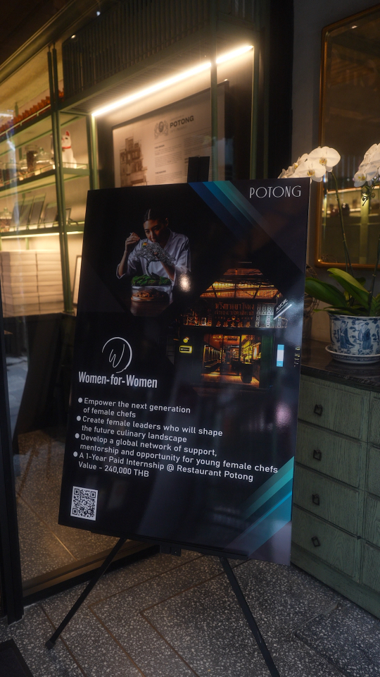 ด้วยรายได้จากงานระดมทุน เงินบริจาค และการสนับสนุนสปอนเซอร์ เชฟแพม เจ้าของและเชฟใหญ่ของร้าน POTONG ร่วมกับ AWC Thailand จะนำรายได้และเงินเนับสนุนเหล่านี้เป็นพลังแห่งโอกาส ช่วยเหลือนักศึกษาหญิงไทยที่ขาดทุนทรัพย์ ในการศึกษาระดับมหาวิทยาลัยทั่วประเทศ โดยโครงการนี้ได้ดำเนินการร่วมกับ AWC และ EDF Thailand (มูลนิธิส่งเสริมการศึกษาเพื่อการพัฒนา ประเทศไทย) และเพื่อเป็นสนับสนุนโครงการ WFW (Women-for-Women Scholarship & Internship Program) ในการส่งเสริมศักยภาพนักศึกษาหญิงไทยในสายการทำอาหาร สานฝันสู่เชฟมืออาชีพ และให้โอกาสการศึกษาสู่ชนบท ทางเชฟแพม จึงร่วมกับ AWC Thailand จัดงานดินเนอร์การกุศล ณ ร้าน POTONG โดยจำกัดเพียง 35 ที่นั่ง ในราคา 17,000 บาท ต่อท่าน ในวันที่ 17 มิถุนายน 2567 รับรองว่างานนี้นอกจากจะได้อิ่มอกอิ่มใจกับการเป็นส่วนหนึ่งในการช่วยเหลือสังคมแล้ว ยังจะได้อิ่มอร่อยกับคอร์สเมนูอาหารสุดพิเศษที่รังสรรค์โดยทีมเชฟแพม จากร้าน POTONG การันตีด้วยดีกรี 1 มิชลินสตาร์ และ World Best New Restaurant สำหรับคนรุ่นใหม่ที่รักในการทำอาหาร อยากสานฝันตัวเองในการเป็นเชฟหญิงในอนาคต หรือเหล่าฟู้ดดี้สายไฟน์ไดน์นิ่งคนไหนที่สนใจอยากร่วมสนับสนุนโครงการผ่านมื้ออาหารแล้วละก็ สามารถติดตามรายละเอียดเพิ่มเติมได้ทาง www.restaurantpotong.com/wfw-scholarship
