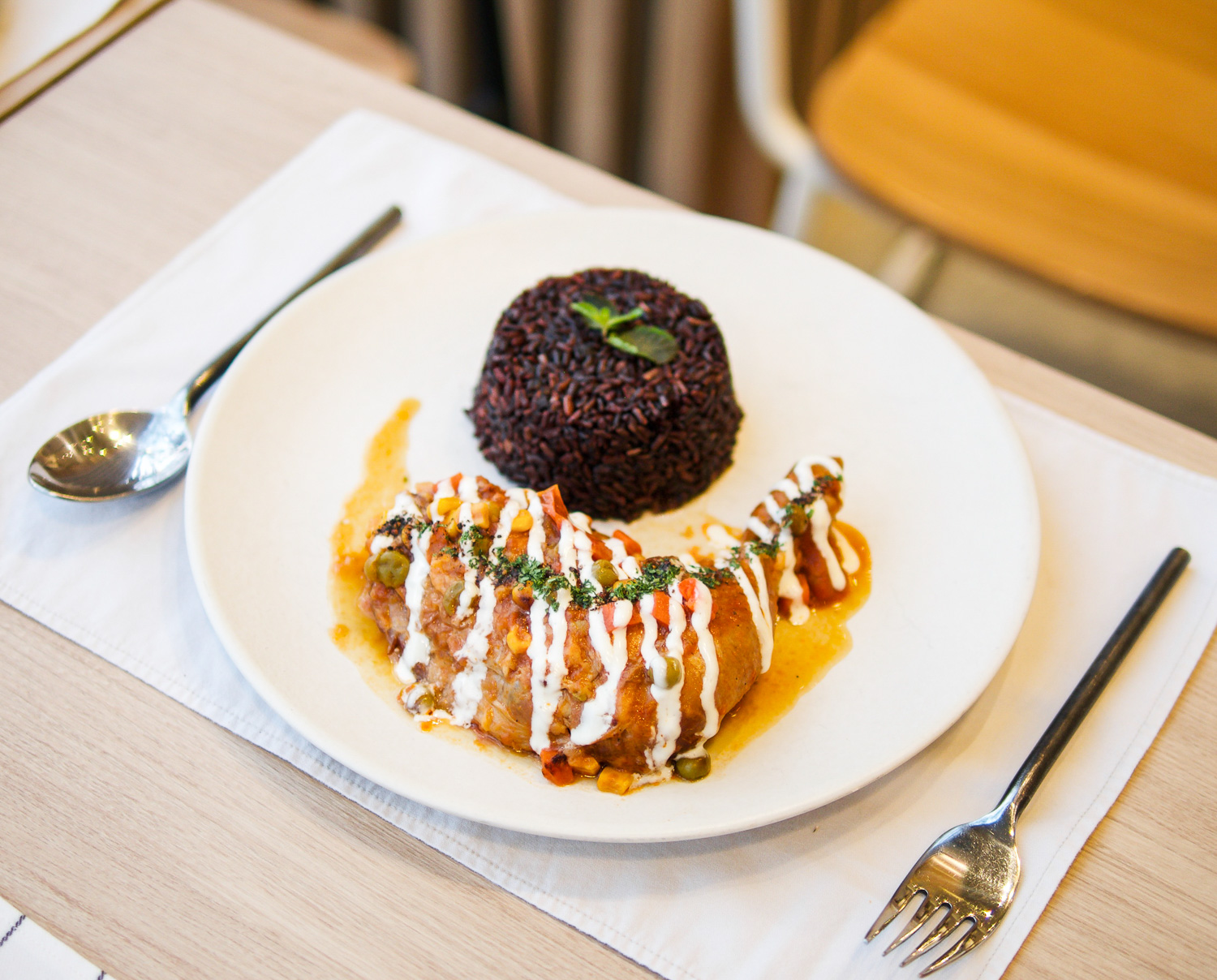 เมนูอาหารแนะนำเป็น สลัดยำหมูย่าง (250 บาท) เมนูขายดีของทางร้าน สลัดหมูคุโรบุตะราดด้วยน้ำสลัดรสแซ่บสูตรเฉพาะของทางร้าน