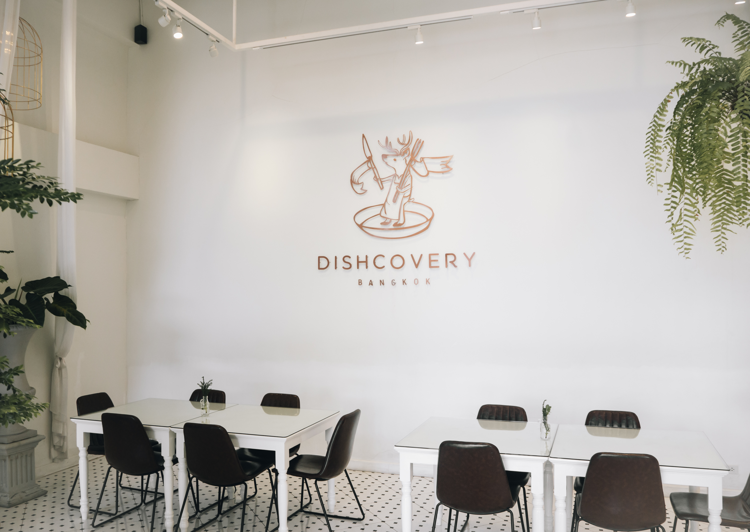 Dishcovery Bangkok ร้านอาหารสไตล์มินิมอลที่แฝงไปด้วยความเรียบหรู โดยชื่อร้านมีที่มาจากคำว่า "Discovery" เมื่อนำคำว่า Dish มาเล่นคำทำให้มีความหมายว่า "การค้นพบอาหารจานใหม่ ๆ" การตกแต่งภายในร้านเน้นโทนสีขาว สีไม้อ่อน และสีเขียวจากต้นไม้เป็นหลัก ให้ความรู้สึกโล่ง โปร่ง สบาย และเป็นกันเอง