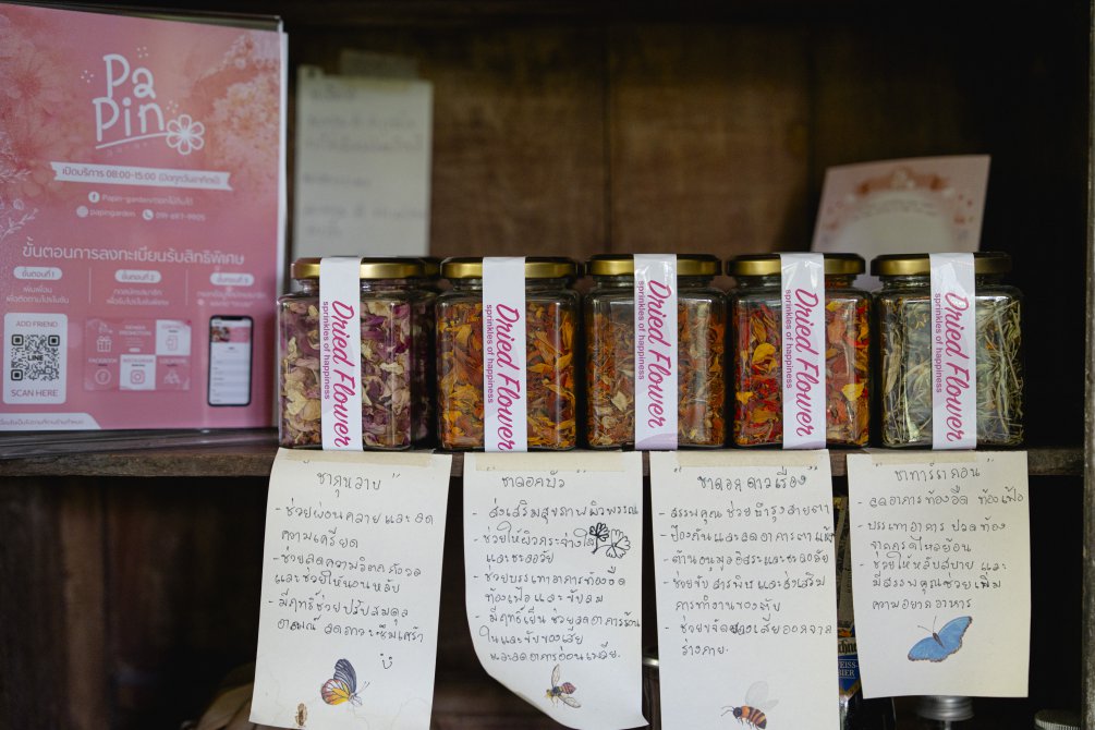 สวนดอกไม้ของ PaPin-Garden จึงกลายเป็นแหล่งวัตถุดิบสำคัญที่มีทั้งดอกไม้และสมุนไพรต่าง ๆ รวมลิสต์กว่า 70 รายการ มีความออร์แกนิก สะอาดปลอดภัย ไร้สารเคมี โดยเน้นความหลากหลาย คัดสรรพืชพรรณใหม่ ๆ มาปลูก โดยตัวอย่างดอกไม้กินได้ของทางสวน ไล่เรียงการปลูกมาตั้งแต่ดาวเรือง, ดาวกระจาย, ดอกผีเสื้อ, กุหลาบ, พวงชมพู, อัญชัน ไปจนถึงพืชสมุนไพรอย่างมิ้นต์ สะระแหน่ และโหระพา เป็นต้น สามารถจัดส่งได้ตลอดทั้งปี นอกจากนี้โลเคชันสวนยังตั้งอยู่ในตัวเมืองที่นับเป็นจุดเด่นด้านการจัดส่งที่รวดเร็วและสดใหม่ รวมถึงยังขนส่งดอกไม้ด้วยรถมอเตอร์ไซค์ไฟฟ้า (EV) ที่ส่งเสริมและสนับสนุนในเรื่องของความยั่งยืนควบคู่กันไปอีกด้วย