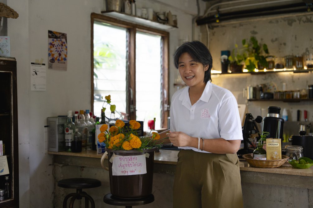 และเมื่อได้เริ่มต้นลงมือทำ จากธุรกิจเล็ก ๆ ก็ปรากฏว่าได้ผลตอบรับที่ดีมาก สามารถขยับขยายไปได้เรื่อย จนกลายมาเป็นอาชีพหลัก ปลูกดอกไม้กินได้ (Edible Flowers) ที่ส่งดอกไม้ให้กับเชฟ ร้านอาหาร และคาเฟ่น้อยใหญ่หลากหลายแห่ง สร้างรายได้และต่อยอดเป็นคาเฟ่ในสวนได้จนถึงทุกวันนี้