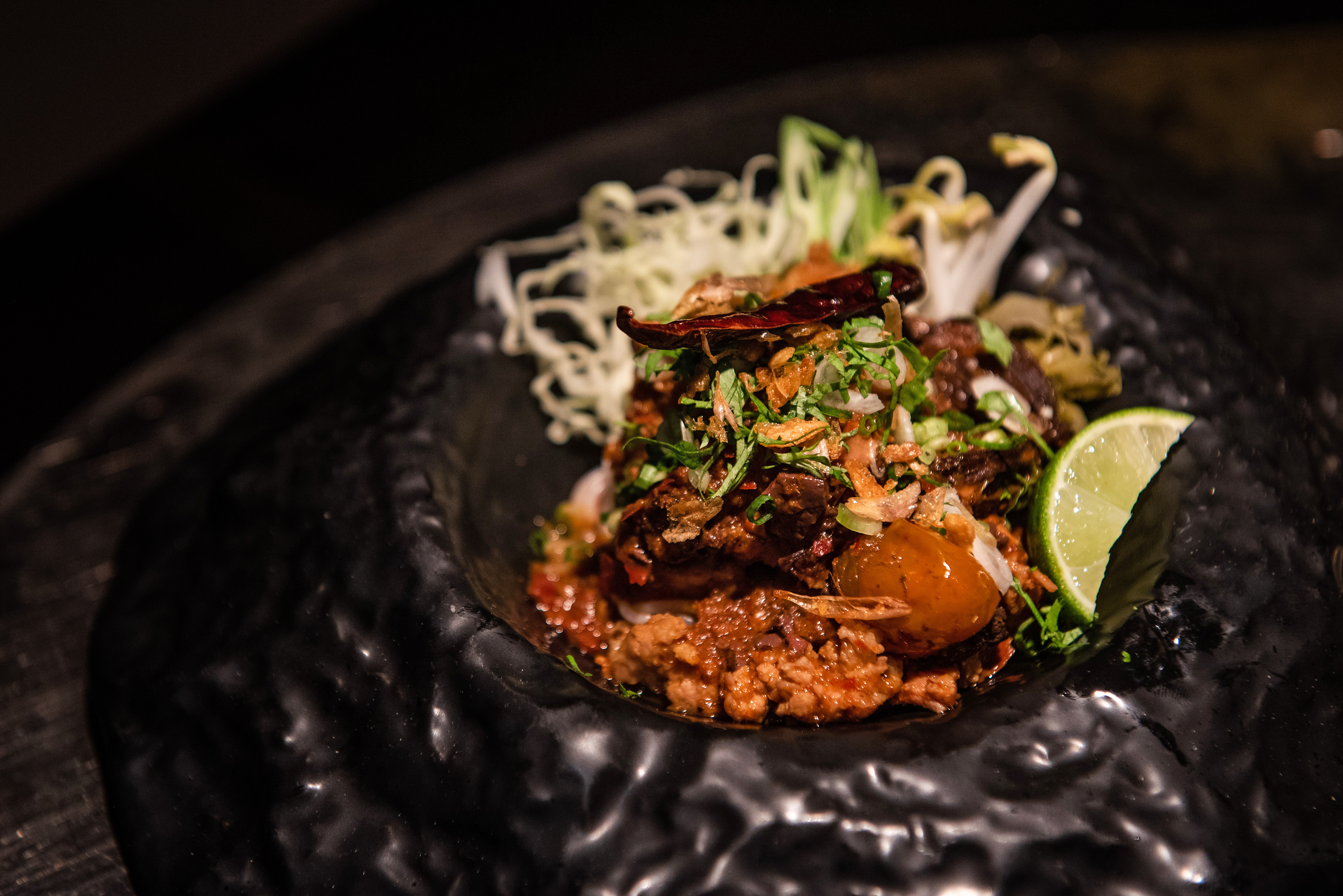 นอกจากเครื่องดื่มแอลกอฮอล์แล้ว ทางร้านยังมีเครื่องดื่มแบบ Non-Alcholic ให้เลือกสั่งด้วย ลองเมนูในหมวด Brew & Steep ที่ทางร้านเบลนด์ชาเองจากวัตถุดิบเหลือใช้ในครัว และยังมีเมนู Teatail หรือการนำชามาครีเอตเป็นเมนู Mocktail ให้เลือกสั่งด้วย แนะนำ Teatail ชาก้านโหระพา (180 บาท) เสิร์ฟมาเย็น ๆ เพิ่มความหอมด้วยใบเตย หรือจะเป็น ชาก้านโหระพาร้อน (180 บาท / กา) ชาร้อนกลิ่นหอม เหมาะกับดื่มในวันอากาศเย็น2. Err Urban Rustic Thai