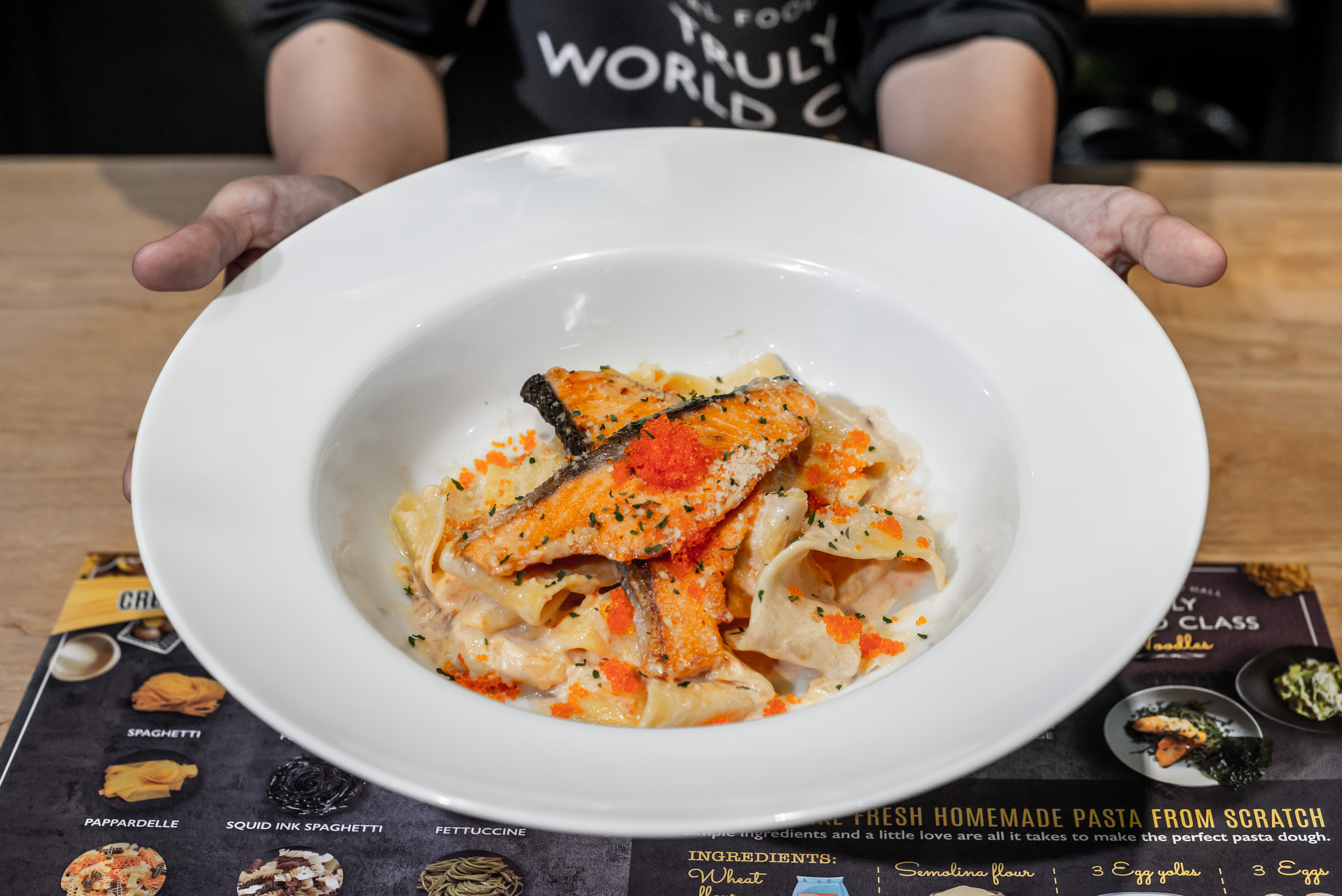 ตามมาด้วยฝั่งเส้นสไตล์ตะวันตกกับ โซน Dining Area ที่สาธิตวิธีทำเส้นพาสต้าสดสไตล์โฮมเมด เริ่มตั้งแต่วิธีการตีไข่นวดแป้ง นวดส่วนผสมต่าง ๆ เข้าด้วยกัน ไปจนถึงวิธีการรีดเส้นพาสต้าให้เลือกทานถึง 3 แบบ ได้แก่ เส้น Tagliolini, เส้น Tagliatelle และเส้น Pappardelle ก่อนจะนำมาครีเอทเป็นเมนูโปรดที่สามารถเลือกประเภทของเนื้อสัตว์และชนิดของซอสได้ตามชอบ