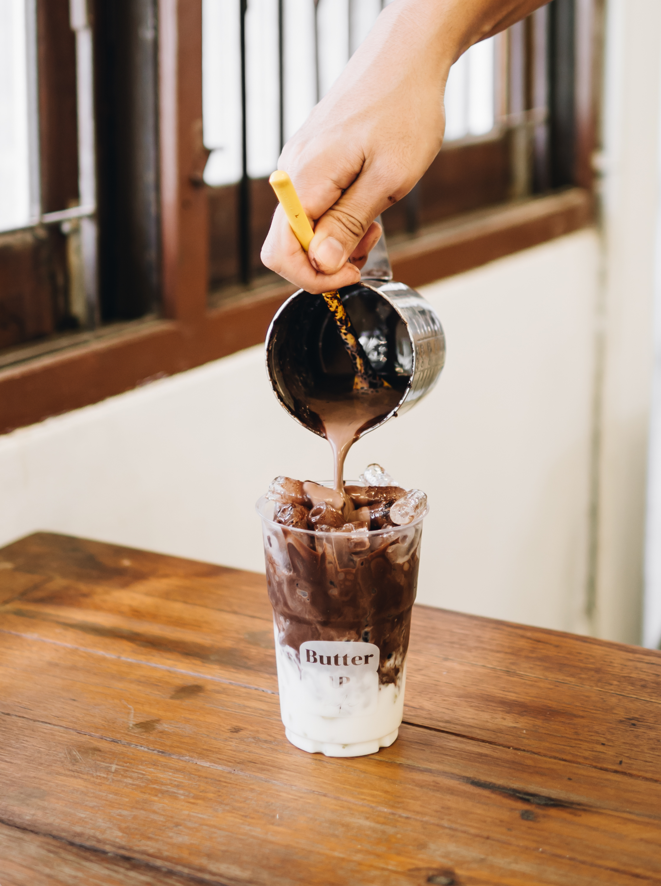 ถัดมาไม่ไกลกันเป็นร้าน Butter Up คาเฟ่เรือนกระจกสุดเก๋ที่ครองใจคนชอบดื่มนม โดยพร้อมนำเสนอเมนูเครื่องดื่มที่มีส่วนผสมของนมเป็นหลัก ไม่ว่าจะเป็นเมนูซิกเนเจอร์อย่าง Rich Cocoa โกโก้รสเข้มที่สามารถเลือกระดับความหวานได้ตามต้องการ