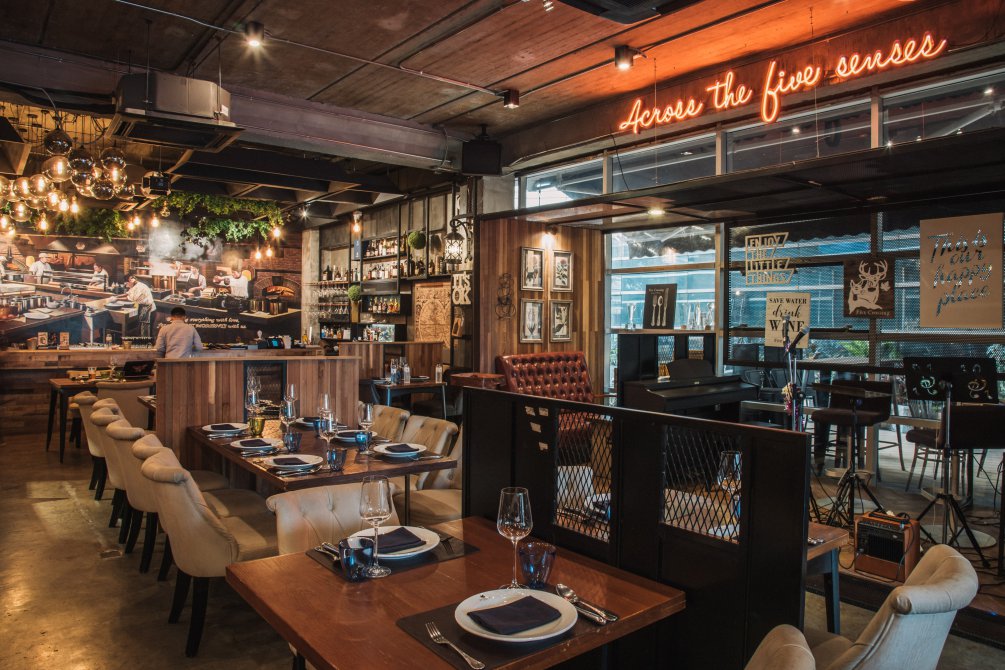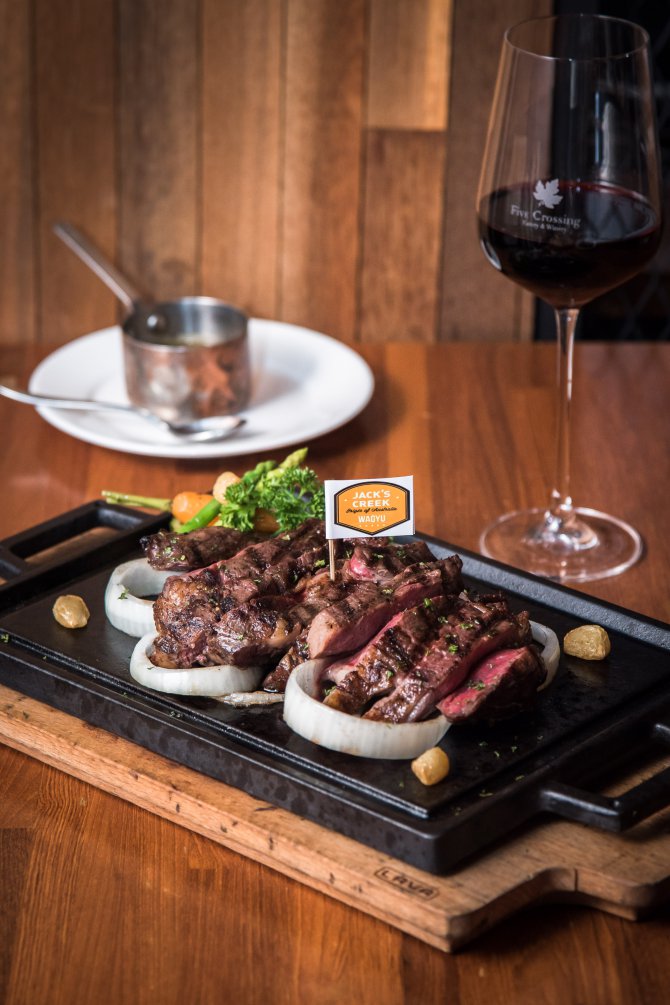 Five Crossing Eatery & Winery ร้านอาหารอิตาเลียนโฮมเมดสไตล์ทัสคานีในเมืองทองธานี ที่นำเสนอประสบการณ์การรับประทานอาหารครบทั้ง 5 สัมผัส ทั้งรสชาติ กลิ่น รูป เสียง และการสัมผัส ผ่านเมนูอาหารคุณภาพและบรรยากาศอบอุ่น โดยมีเมนูเด่นอย่าง Foie Gras & Cherry Sauce (850 บาท), Lobster Thermidore (2,500 บาท/กิโลกรัม), และ Jack’s Creek Wagyu (3,300 บาท/500 กรัม) พร้อมไวน์ชั้นยอดและดนตรีสดในทุกค่ำคืน