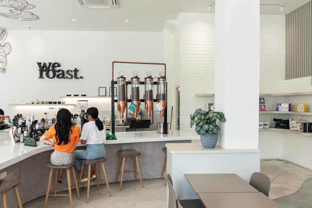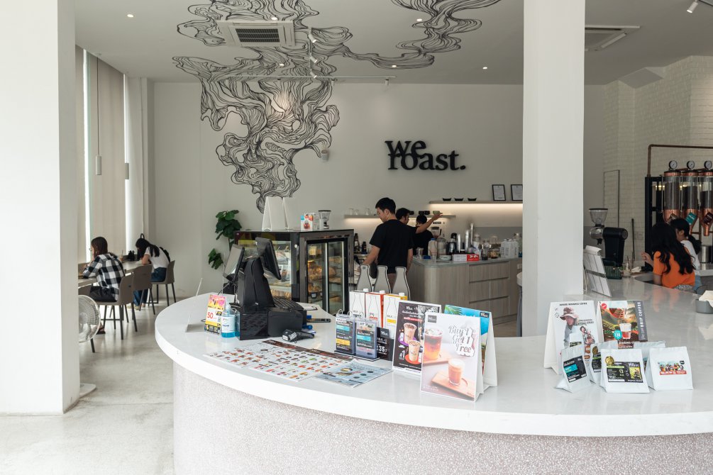 We Roast Cafe ร้านกาแฟ Specialty Coffee สีขาวสะอาดตาในเมืองทองธานี ที่พร้อมเสิร์ฟหลากหลายเมนูเครื่องดื่มให้เลือกทั้ง Coffee และ Non-Coffee ในบรรยากาศสบาย ๆ พร้อมเปิดเป็น Co-Working Space ให้คุณได้นั่งชิลล์กันตลอดทั้งวัน ไม่ว่าจะมาเดี่ยวหรือมาเป็นกลุ่มก็จอยได้ทั้งชั้น 1 และชั้น 2 . สำหรับเมนูแบบ Non-Coffee ก็มีให้เลือกตั้งแต่เมนูนม ชาเชียว โกโก้ไปจนถึงน้ำผลไม้ต่าง ๆ แต่สำหรับใครที่เป็นคอกาแฟ ทางร้านยังมีเมล็ดกาแฟให้เลือกหลากหลายสายพันธุ์และหลากหลายโปรไฟล์ จะคั่วอ่อน คั่วกลางหรือคั่วเข้มก็อร่อยได้ทุกเมนู