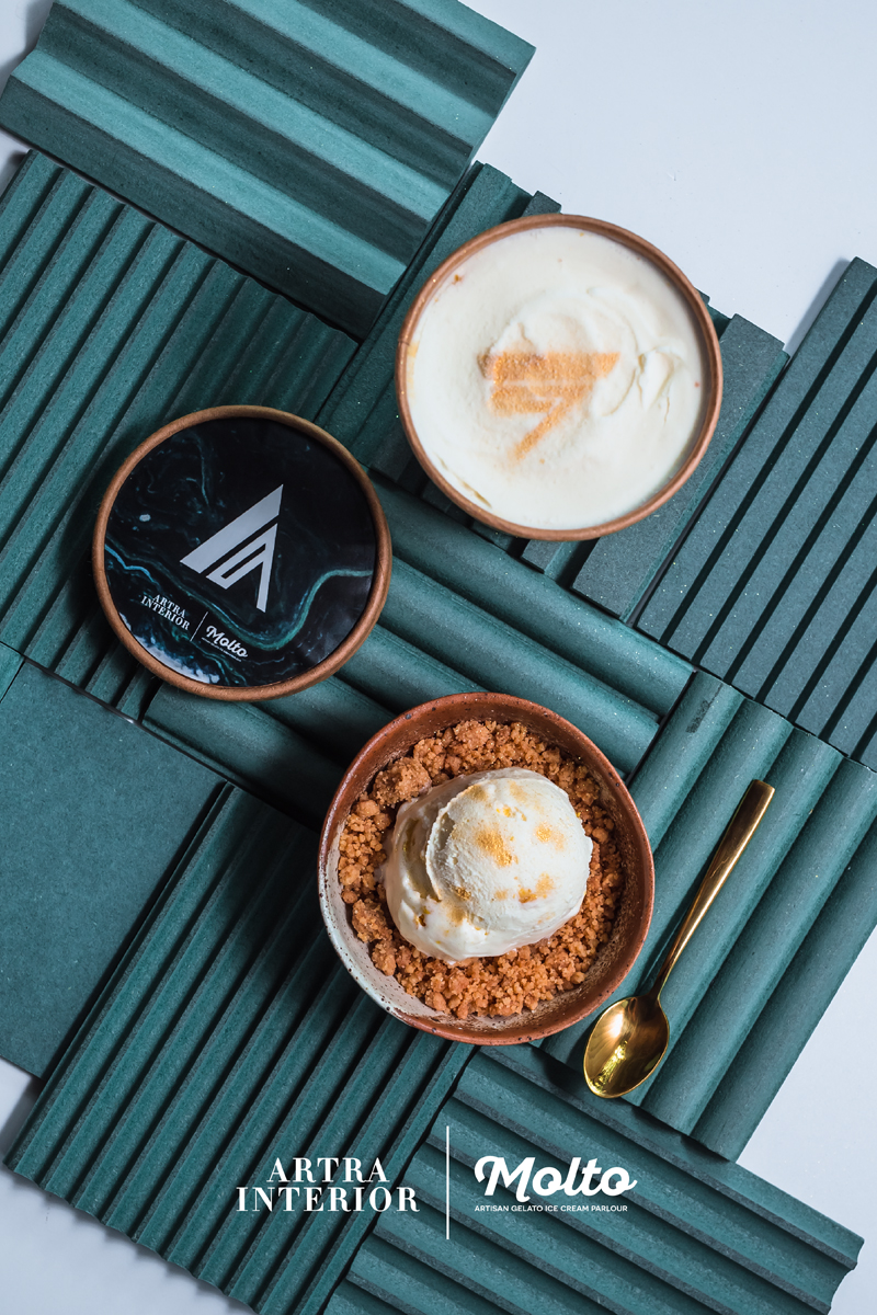 ไอศกรีมเจลาโต้รสชาติพิเศษที่มาพร้อมแพ็กเกจจิ้งดีไซน์สุดเก๋ จากการ Collaboration กันระหว่างแบรนด์ ARTRA Interior และ MOLTO Premium Gelato (Photo by MOLTO Premium Gelato)