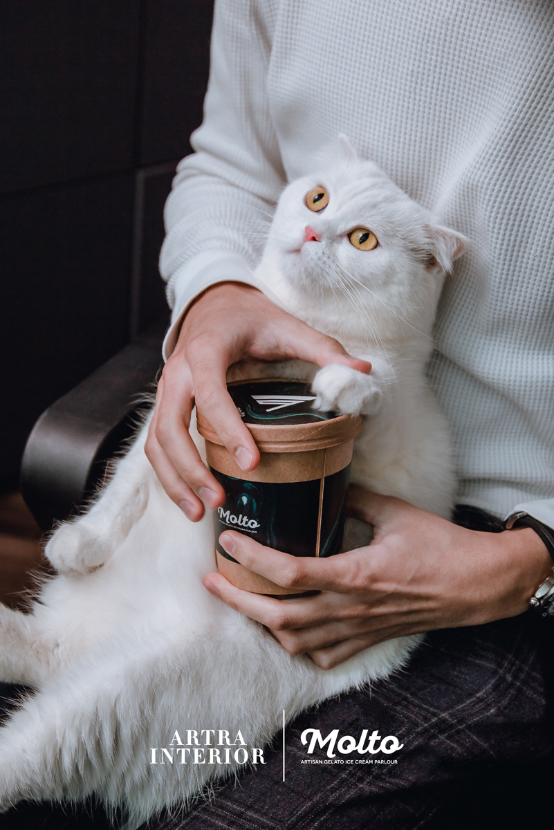 จุดเริ่มต้นของผลงาน Collaboration แห่งวงการอินทีเรียดีไซน์ที่นำไปสู่การครีเอตรสชาติไอศกรีมสุดพิเศษในครั้งนี้มาจากเจ้า ‘คาราร่า’ น้องแมวขนปุยสุดน่ารักที่มาพร้อมตำแหน่ง Chief of Happiness ผู้เป็นเสมือนสัญลักษณ์ในการส่งต่อความสุขให้กับลูกค้าคนสำคัญของ ‘ARTRA Interior’