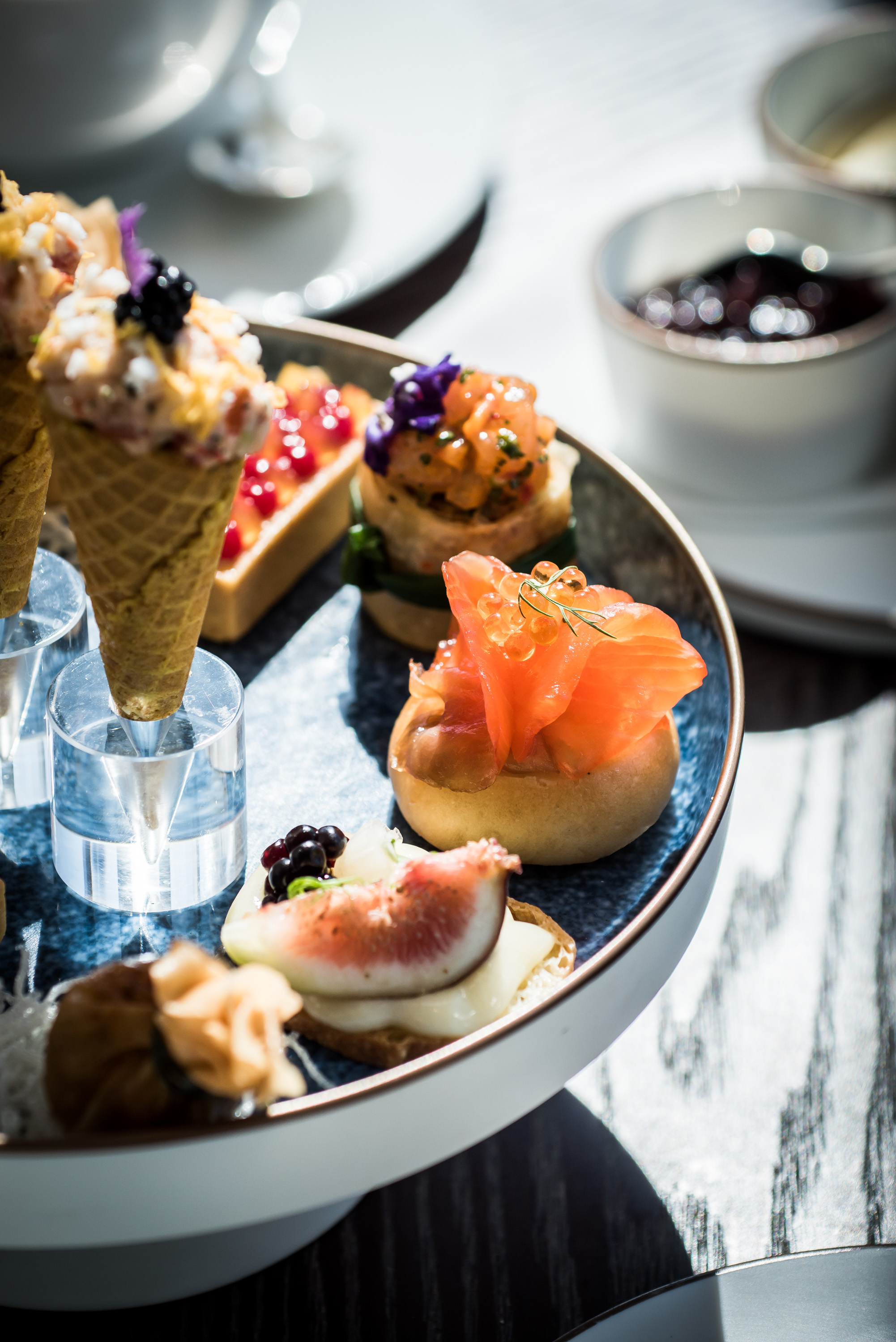 สำหรับเมนูอาหารของชุดน้ำชายามบ่าย Festive Afternoon Tea จัดเต็มมาด้วยหลากหลายเมนูคาวหวาน อันโดดเด่นด้วยรสชาติที่เป็นเอกลักษณ์ตามแบบฉบับ Peacock Alley เริ่มกันที่ Savory Bites ที่มีหลากหลายเมนูสุดพิเศษให้เลือกทาน อาทิ Lobster Salad, Savory Cone / Fresh Fig, Creamy Brie, Balsamic Pearls / Tung Thong / Bagel, Salmon Gravlax, Dill, Cream Cheese / Carabineros Prawn Caesar Wrap และ Foie Gras Tart, Raspberry & Yuzu Gel โดยให้รสชาติกลมกล่อมที่ผสมผสานความอร่อยออกมาได้อย่างลงตัว