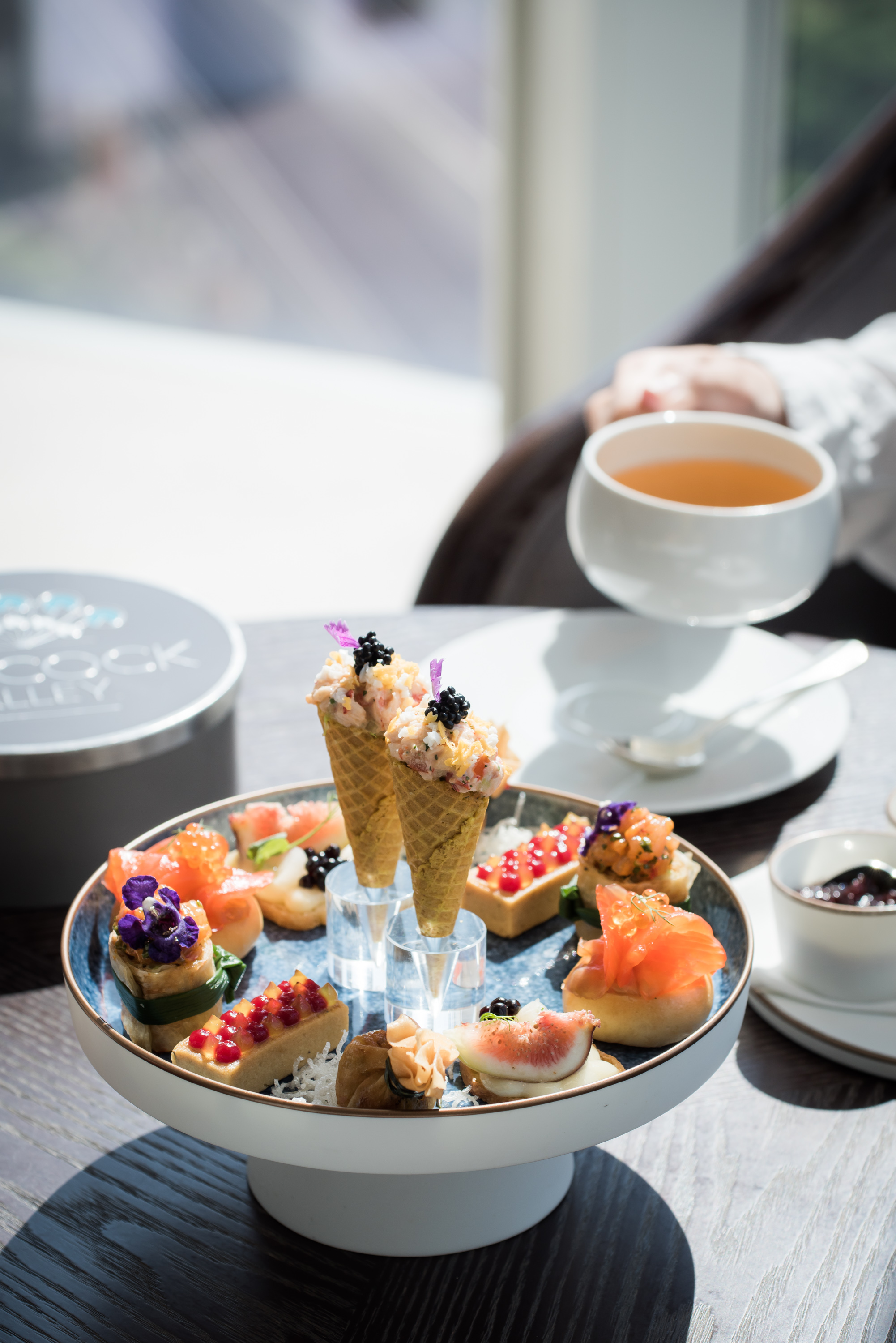 สำหรับเมนูอาหารของชุดน้ำชายามบ่าย Festive Afternoon Tea จัดเต็มมาด้วยหลากหลายเมนูคาวหวาน อันโดดเด่นด้วยรสชาติที่เป็นเอกลักษณ์ตามแบบฉบับ Peacock Alley เริ่มกันที่ Savory Bites ที่มีหลากหลายเมนูสุดพิเศษให้เลือกทาน อาทิ Lobster Salad, Savory Cone / Fresh Fig, Creamy Brie, Balsamic Pearls / Tung Thong / Bagel, Salmon Gravlax, Dill, Cream Cheese / Carabineros Prawn Caesar Wrap และ Foie Gras Tart, Raspberry & Yuzu Gel โดยให้รสชาติกลมกล่อมที่ผสมผสานความอร่อยออกมาได้อย่างลงตัว
