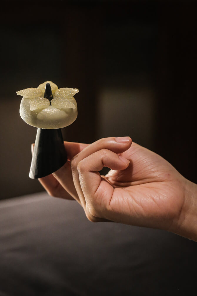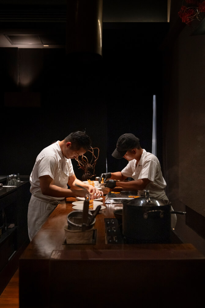 ภายในอบอวลด้วยบรรยากาศลึกลับ ชวนให้ค้นหาเช่นเดียวกับคอร์สอาหารของ เชฟศรีล โรจนเมธิน เฮดเชฟและเจ้าของร้าน ผู้ถ่ายทอดความเป็นไทยในรูปแบบใหม่ ผ่านกระบวนการปรุงที่กล้าแตกต่างและไม่ยึดติดกับกรอบเดิม ทุกจานคือการตีความใหม่ของความคุ้นเคย เปลี่ยนสิ่งธรรมดาให้กลายเป็นประสบการณ์เหนือความคาดหมาย ด้วยการจับคู่วัตถุดิบอย่างแปลกใหม่ เทคนิคเฉียบคม และการนำเสนอที่ทั้งน่าตื่นตาและชวนเซอร์ไพรส์ จึงไม่เพียงแค่เล่าเรื่องรสชาติ แต่ยังชวนให้ตั้งคำถามและค้นพบมุมมองใหม่ของอาหารไทยไปพร้อมกัน