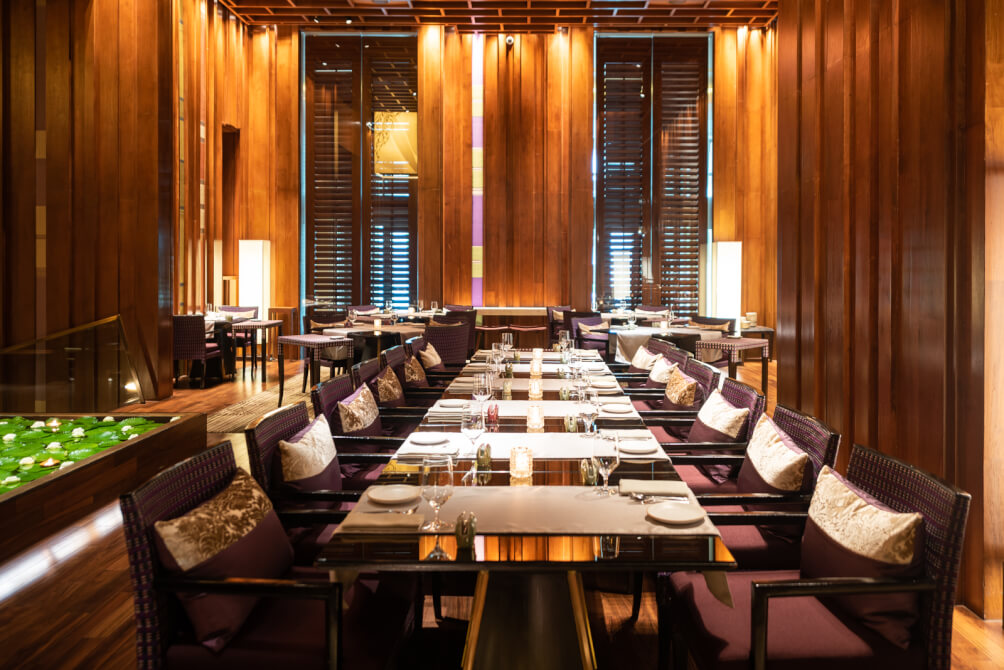 ต่อมา ขอชวนมาดื่มด่ำอาหารไทยสไตล์ไฟน์ไดน์นิ่งกันที่ Sra Bua by Kiin Kiin ห้องอาหารไทยระดับตำนานที่อยู่คู่กับ Siam Kempinski Hotel Bangkok มาอย่างยาวนาน อีกทั้งยังการันตีคุณภาพด้วยรางวัลมากมาย อาทิ Michelin Star 1 ดาวหลายปีซ้อน อันดับ 1 ใน Asia’s 50 Best Restaurant ปี 2014 พร้อมนำเสนอหลากหลายเมนูอาหารไทยที่ผสมผสานเทคนิคและกรรมวิธีการทำจากทั่วโลกมาใช้กับวัตถุดิบไทยให้กลายเป็นพระเอกบนจาน
