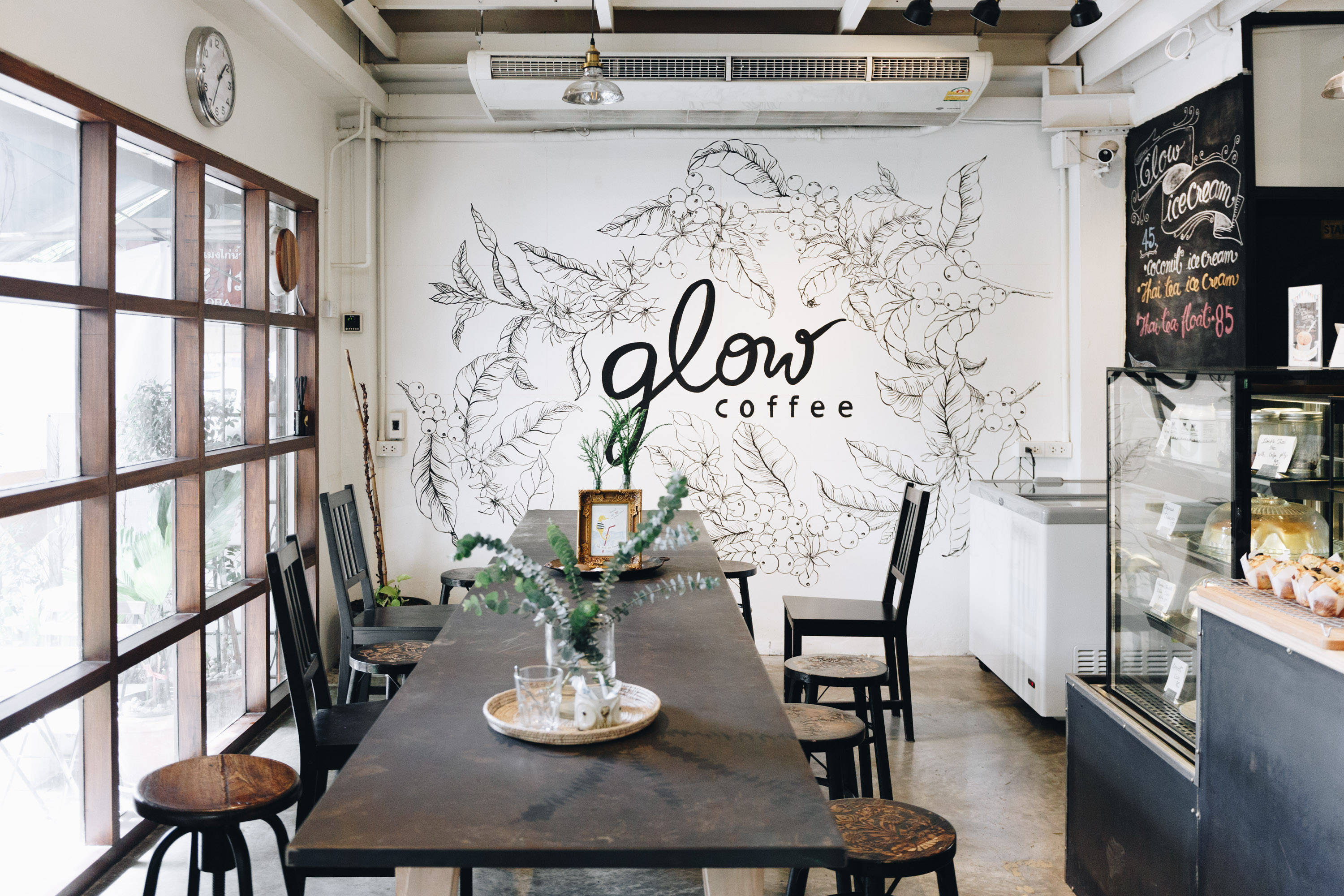 และสุดท้าย Glow Coffee ร้านกาแฟเล็ก ๆ ซึ่งตั้งอยู่ในย่านทองหล่อแห่งนี้ ตั้งใจเป็นจุดเริ่มต้นของเรื่องราวดี ๆ แก่ทั้งคนที่เพิ่งเริ่มต้นดื่มกาแฟและคนรักกาแฟให้ได้มีโมเมนต์ความสุขเล็ก ๆ ไปพร้อมกับโฮมเมดเบเกอรีคุณภาพได้ทุกวัน ในบรรยากาศที่อบอวลไปด้วยความอบอุ่น ละมุน และผ่อนคลาย โดยเฟอร์นิเจอร์ส่วนใหญ่ที่ทางร้านเลือกนำมาใช้จะเป็นวัสดุที่ทำจากไม้และหวาย เพื่อเน้นความเรียบง่ายเป็นธรรมชาติมากที่สุด