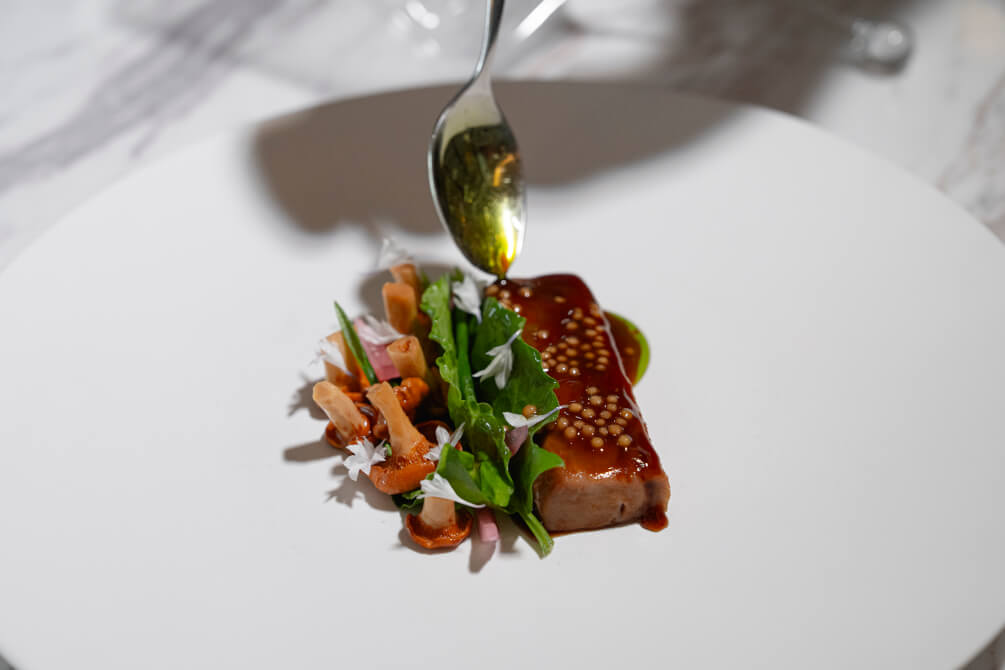 เมนูของที่นี่คือการตีความอาหารตำรับไทยโบราณด้วยเทคนิคสมัยใหม่ วัตถุดิบคุณภาพ และรสชาติที่คงเอกลักษณ์ไทยไว้อย่างครบถ้วน ไม่ว่าจะเป็น Watermelon with Ground Salmon หรือ Southern-style Curry with Lobster ที่ต่างก็สะท้อนความพิถีพิถันและความตั้งใจในทุกขั้นตอน​