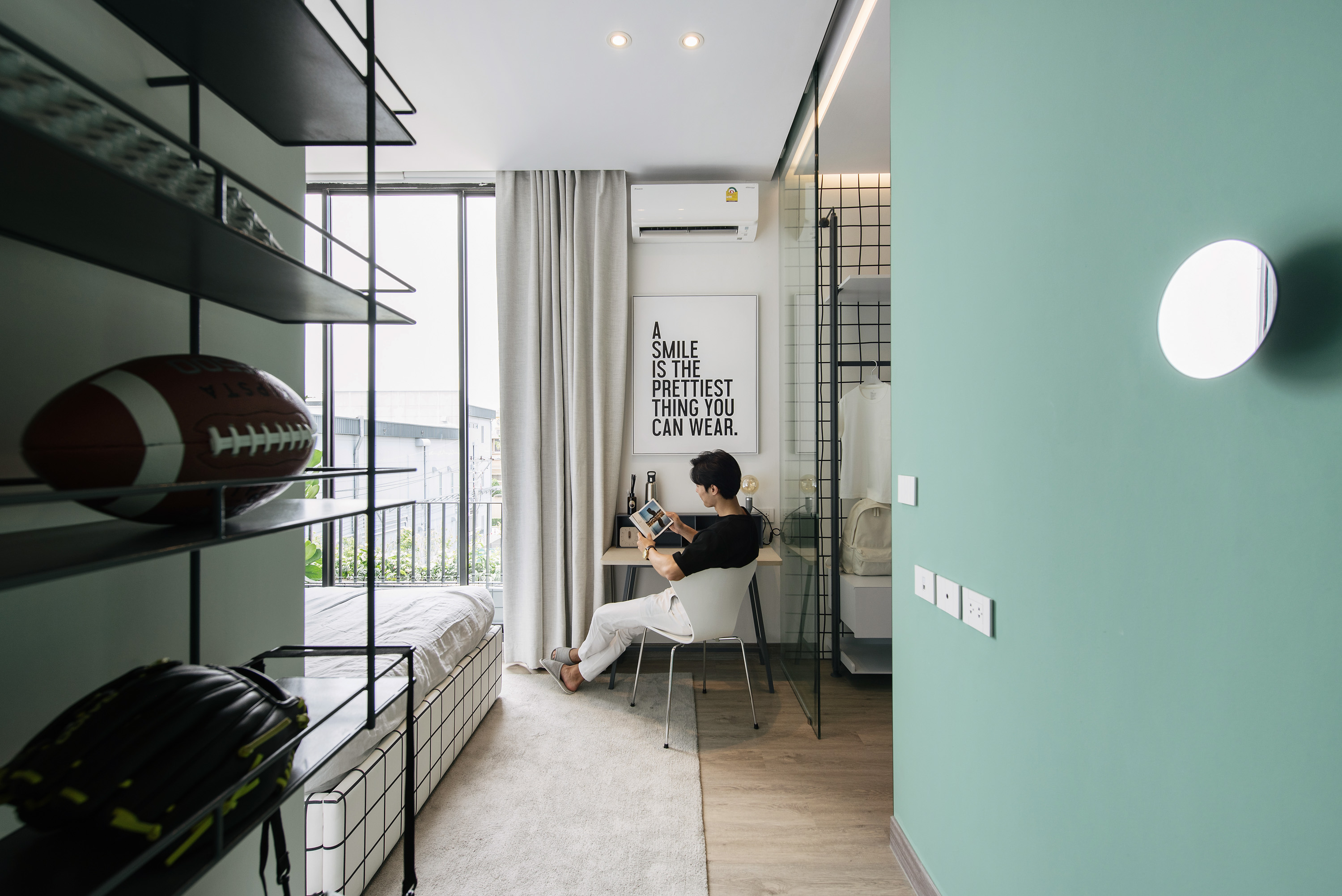 ถัดมาชั้น 3 บนสุด ยังมีอีก 2 ห้อง ที่มีห้องน้ำในตัวทุกห้อง โดยห้องใหญ่ฝั่งหน้าบ้านสามารถทำเป็นห้องนอนที่มี Walk-in Closet ได้เหมือนกัน หรือจะเพิ่มมุมสำหรับงานอดิเรกก็ได้ และห้องเล็กอีกหนึ่งห้อง ตอบโจทย์ครอบครัวที่เพิ่งมีสมาชิกใหม่ด้วยการดัดแปลงเป็นห้องเด็กที่สามารถอยู่ได้จนโต เนื่องจากเป็นห้องที่มีห้องน้ำในตัวเช่นกันจึงให้ความเป็นส่วนตัว