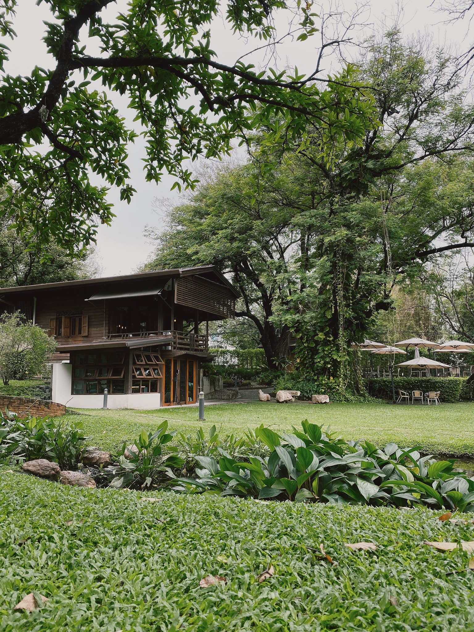 คาเฟ่ในสวนช้างเผือก สวนสาธารณะกลางเมืองเชียงใหม่ โดดเด่นด้วยบ้านไม้เก่าสองชั้นที่ถูกรีโนเวทให้กลายเป็นคาเฟ่ฟีลบ้านสวน กึ่งไม้กึ่งปูนสไตล์ลอฟต์ ภายในตกแต่งด้วยเครื่องเรือนสีไม้กับโซฟานุ่ม ๆ ได้บรรยากาศโฮมมี่โฮมใจ ส่วนชั้นสองของบ้านมีมุมให้เลือกนั่งชมวิวสวนโดยรอบ พร้อมด้วยมุมนั่งชิลในสวน ใต้ร่มไม้ใหญ่ และกลางสนามหญ้าสุดร่มรื่นอีกมาย ให้ได้พักผ่อนหย่อนใจ สัมผัสวิถีสโลว์ไลฟ์กันแบบชิล ๆ