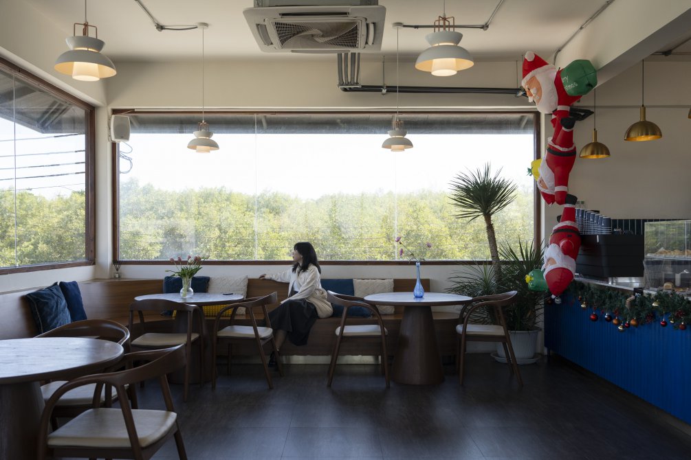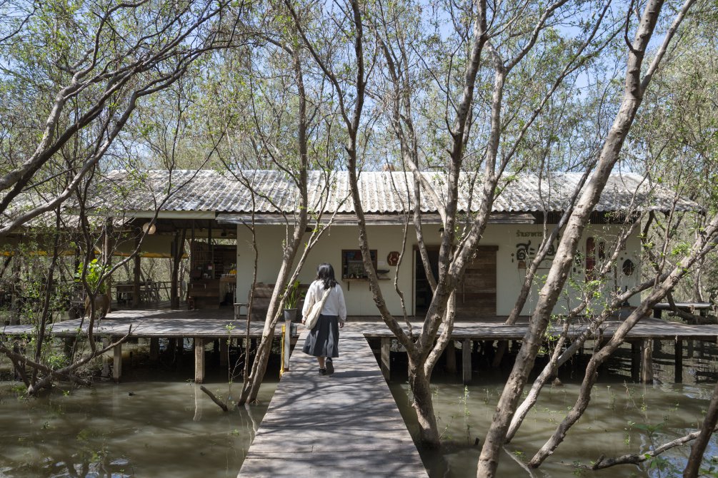 ที่นี่เสิร์ฟทั้งเครื่องดื่ม กาแฟ และเมนูอาหารทะเลสไตล์ไทย บรรยากาศอบอุ่นเป็นกันเอง มีทั้งส่วนของร้านอาหารที่ชั้น 1 โซนคาเฟ่ที่ชั้น 2 และส่วนของดาดฟ้าให้ขึ้นไปชมป่าโกงกางสวย ๆ