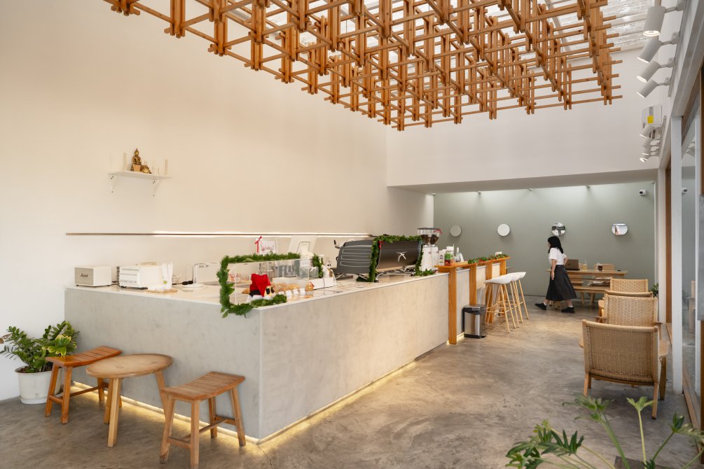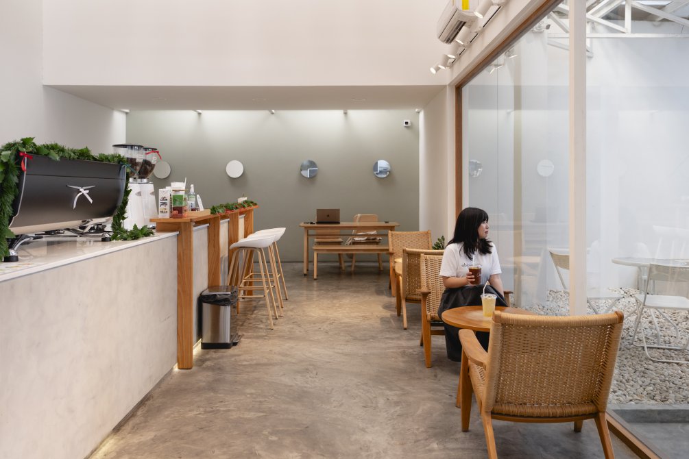 พักจากมื้ออาหาร แล้วชวนกันไปต่อที่ One Another Cafe คาเฟ่มินิมัลในย่านบางปูที่เหมาะกับการแวะนั่งพักระหว่างวัน ตัวร้านตกแต่งด้วยโทนสีขาวตัดกับงานไม้ ให้ความรู้สึกอบอุ่นแต่ยังโปร่งโล่ง เปิดรับแสงธรรมชาติได้เต็มที่ เหมาะกับการนั่งจิบกาแฟช้า ๆ ปล่อยใจให้สบาย หรือใช้เวลาเงียบ ๆ กับแก้วโปรดก่อนออกไปใช้เวลาในย่านนี้กันต่อ