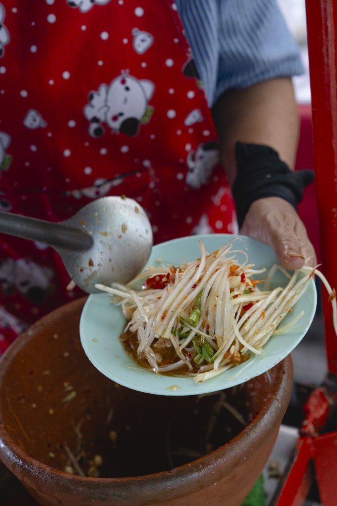 ส่วนใกล้ ๆ กันนั้น จะมีร้านส้มตำขวัญใจชาวถนนตก ที่มีดีเกินหน้าตา โดยเฉพาะคอหมูย่างราดซอสฉ่ำ ๆ ทานคู่กับตำปูปลาร้ารสแซ่บถึงใจ ทีเด็ดคือน้ำจิ้มแจ่วที่เผ็ดหอมลงตัว กินเพลินแบบหยุดไม่ได้ เป็นอีกหนึ่งร้านเล็ก ๆ แต่อัดแน่นด้วยความจัดจ้านแบบอีสานแท้ จนเราขอเก็บไว้ในลิสต์ City Guide ครั้งนี้ บอกเลยว่าห้ามพลาด