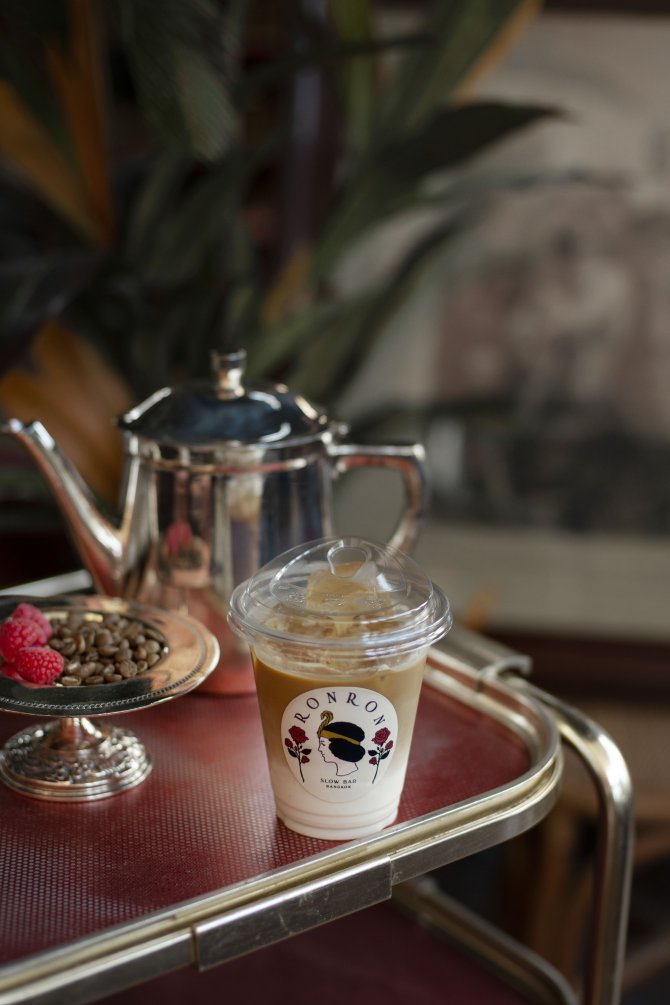 อิ่มอร่อยกับของคาวกันไปแล้ว เราไปต่อที่หมวดคาเฟ่กันบ้างกับร้านแรกอย่าง Ron Ron Slow Bar คาเฟ่แห่งงานสถาปัตย์ ซึ่งหยิบยกช่วงเวลา Golden Hour ที่สวยงาม สงบ และแสนโรแมนติก มาผสานเข้ากับการดื่มด่ำกาแฟดริปท่ามกลางบรรยากาศสบาย ๆ เคล้าไปด้วยเสียงเพลงที่มาช่วยชะลอการรับรู้ของเวลา พร้อมเพลินตาไปกับการดีไซน์ร้านในสไตล์ Art Nouveau ที่ลดทอนความแข็งของอาคารพาณิชย์ให้ดูนุ่มนวลมากขึ้น